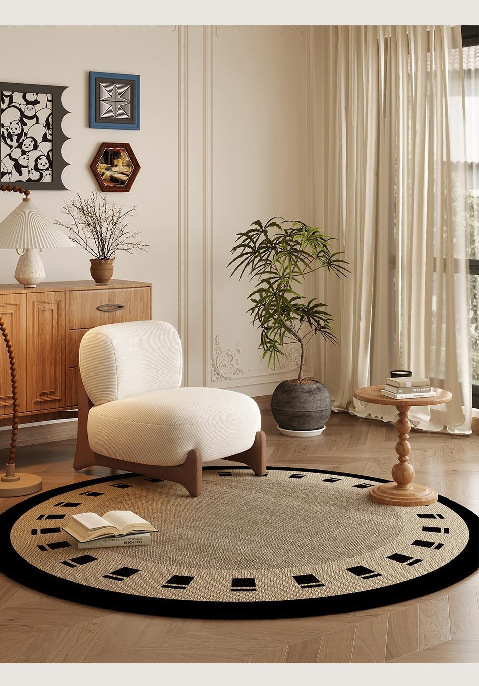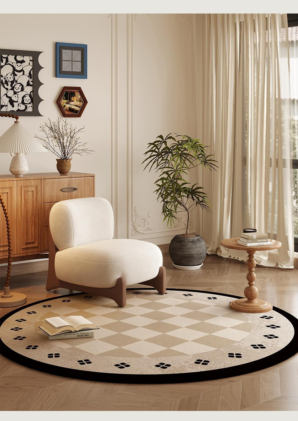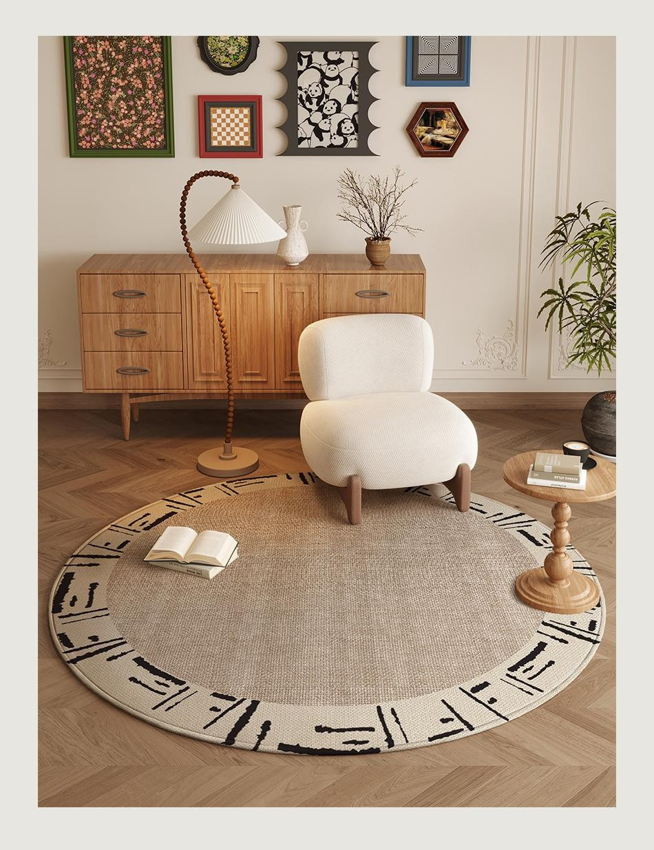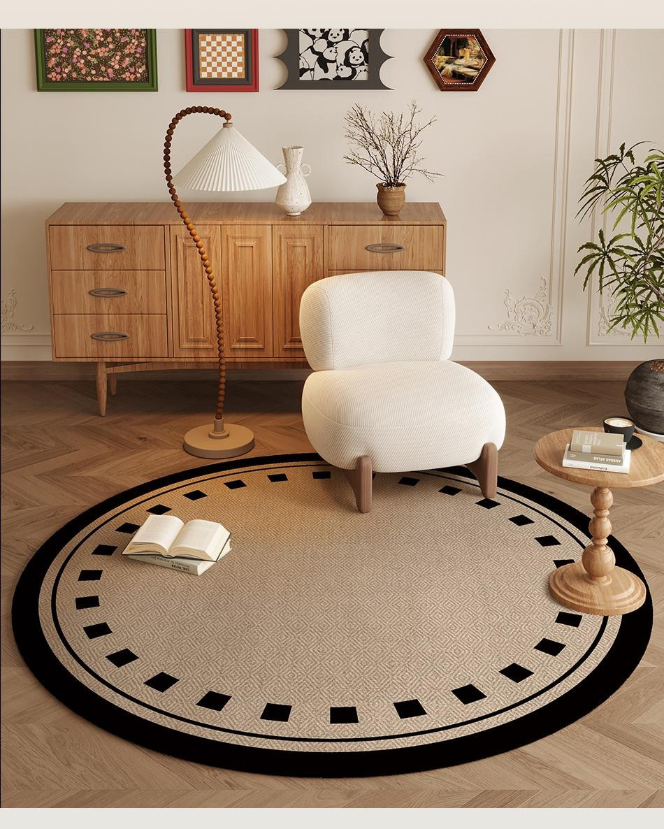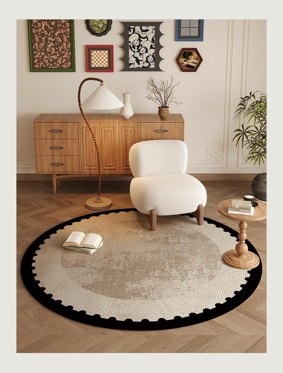 ラウンドカーペットフレンチミッドセンチュリースタイルリビングルームカーペット寝室ベッドサイド書斎ロッキングチェアフロアマットレトロノンスリップフロアマット