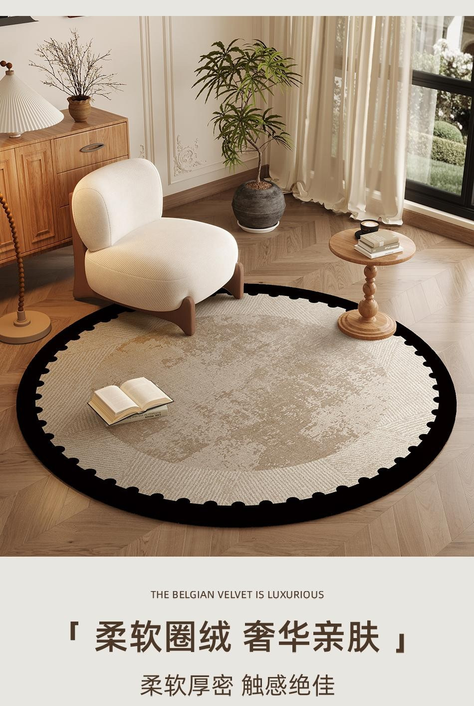 轻奢高级感圆形地毯客厅茶几地毯卧室床边毯家用易打理圈绒地毯