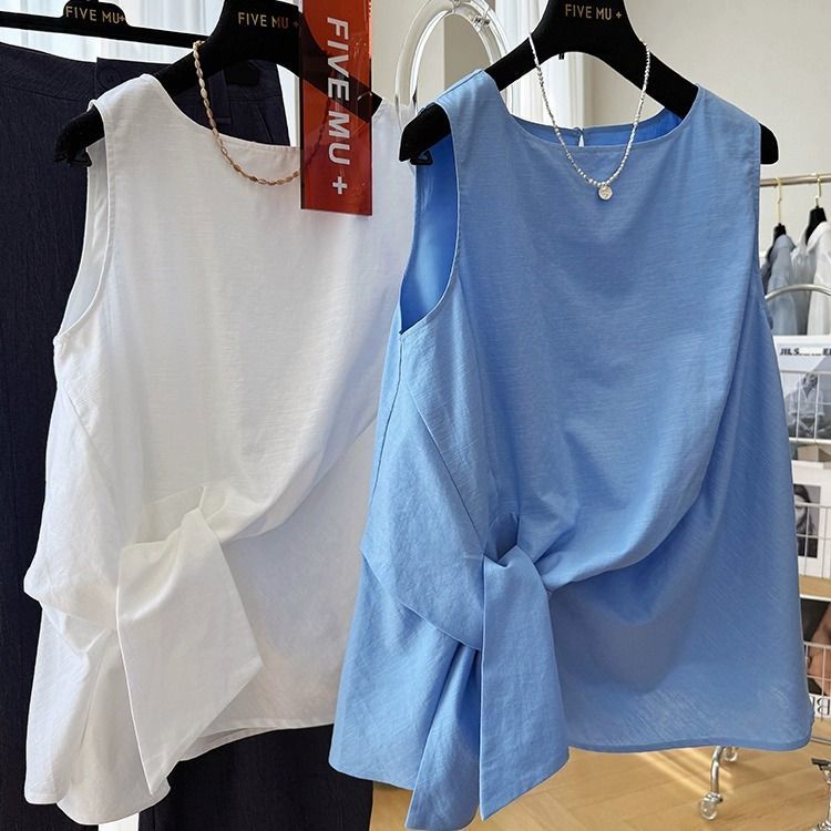 デザインニッチツイストホワイトシャツベストレディース夏韓国風小柄な気質アウターノースリーブトップ
