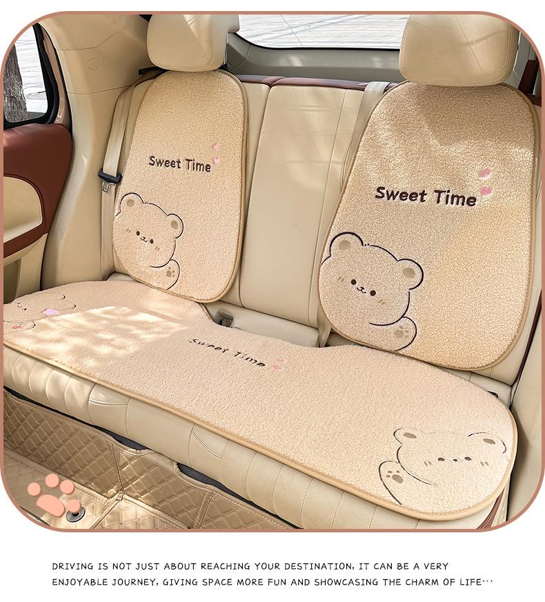 可爱小熊汽车坐垫冬季卡通车用内饰座垫毛绒保暖车载加厚座椅套