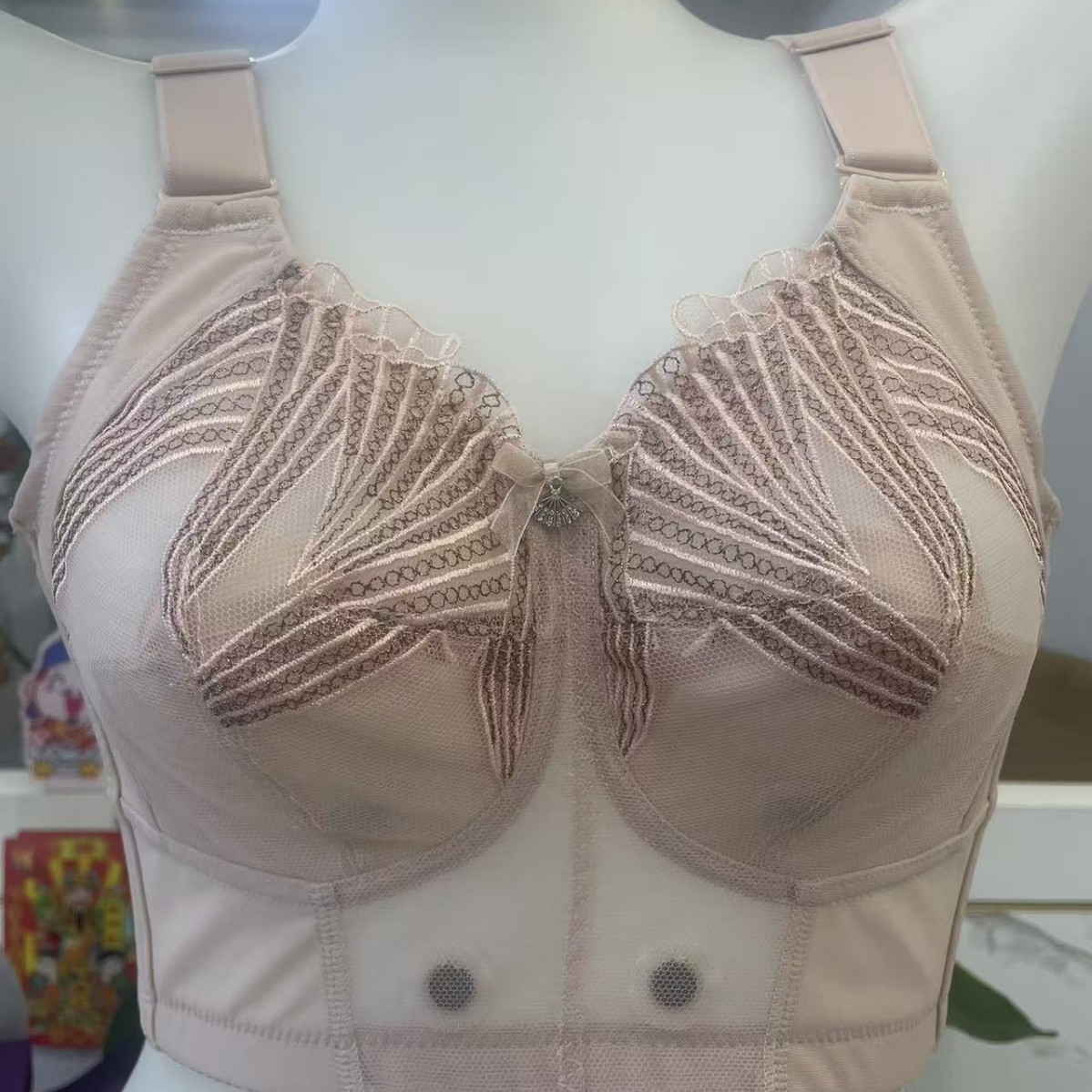外側に拡がるタイプのブラジャー、大きな胸を小さく見せる、垂れ防止レースブラ、ソフトワイヤー入り調整可能高級ブラ、副乳を寄せ集める