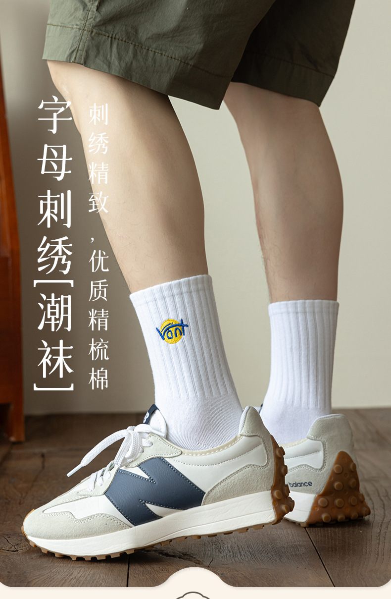 袜子男夏季纯棉中筒袜抗菌防臭吸汗青少年男生运动袜男士长袜春秋