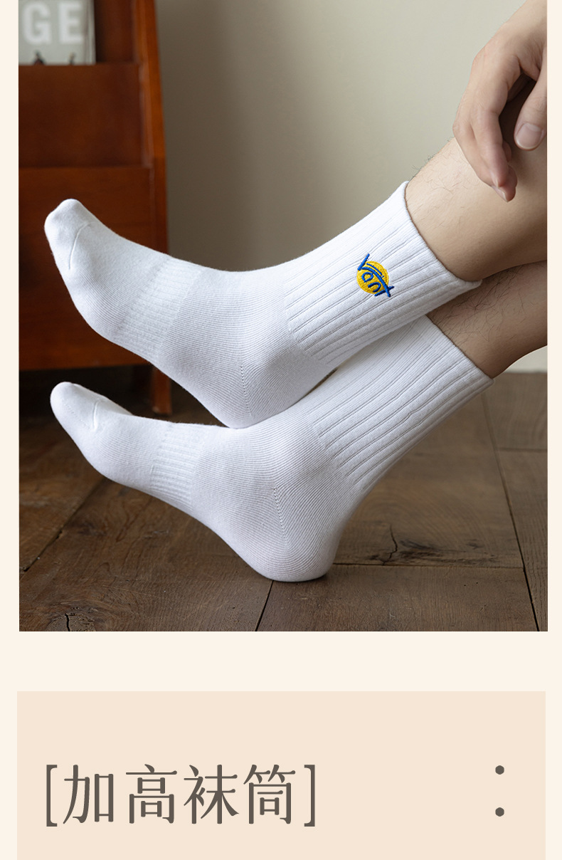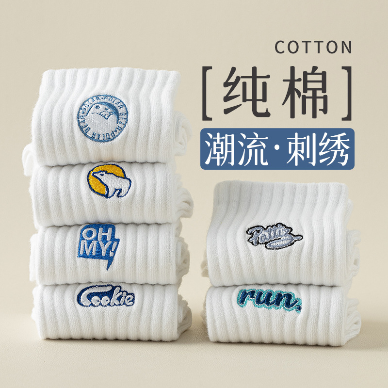 袜子男款青少年春秋纯棉纱吸汗防臭中筒袜初高中大码运动白色长袜