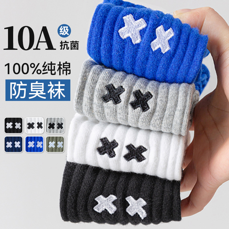 青少年袜子男款纯棉全棉防臭吸汗运动男士男孩初中生学生春秋男袜