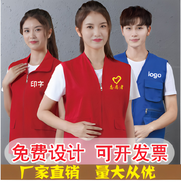 ボランティア馬甲カスタム印字ロゴ赤ボランティアベスト活動広告公益馬甲卸売り注文