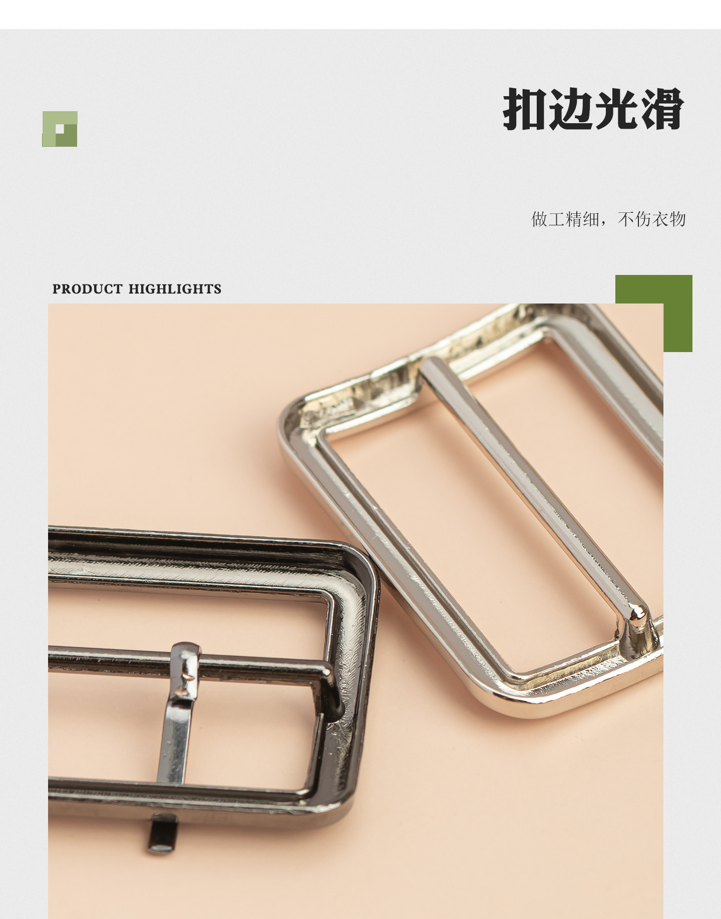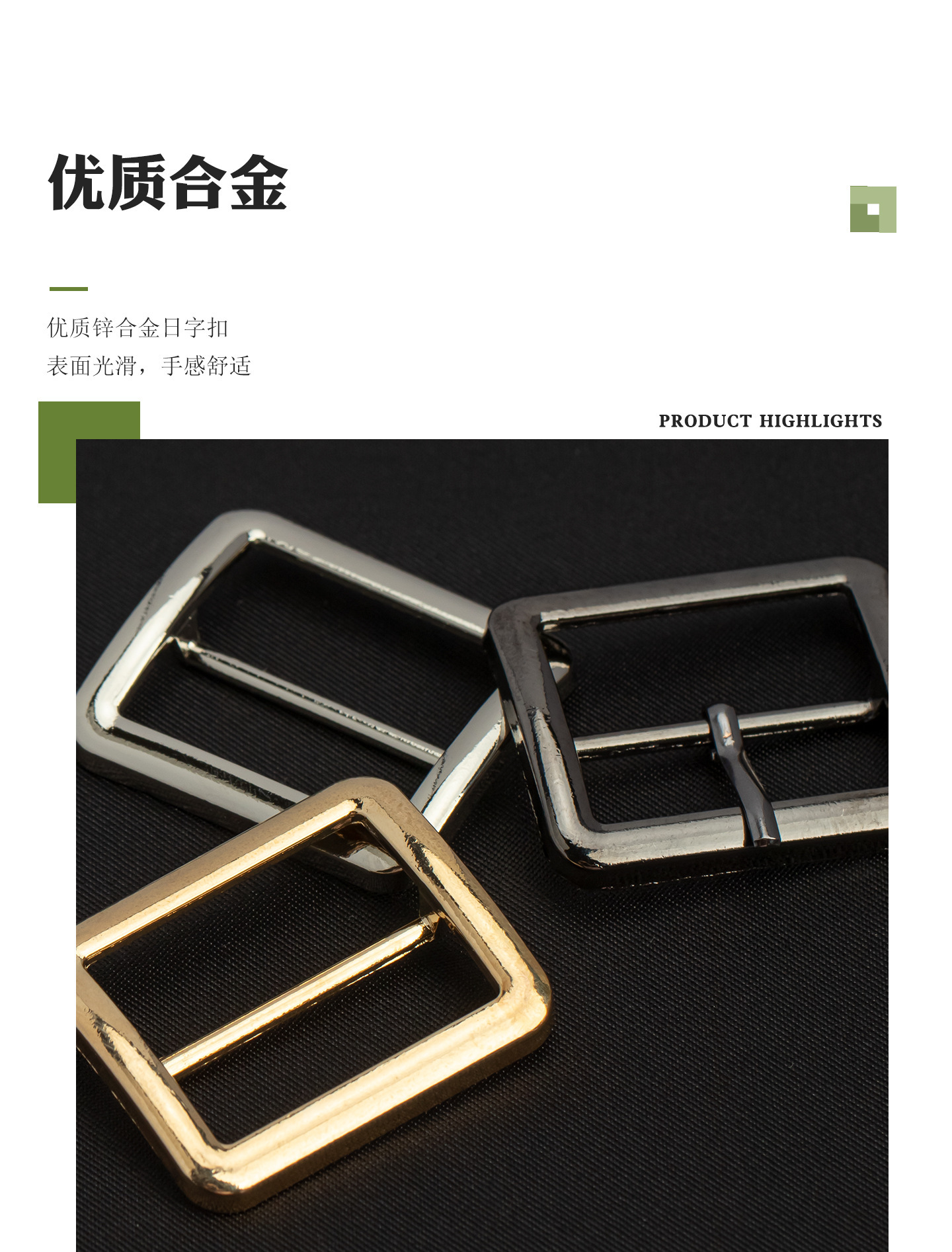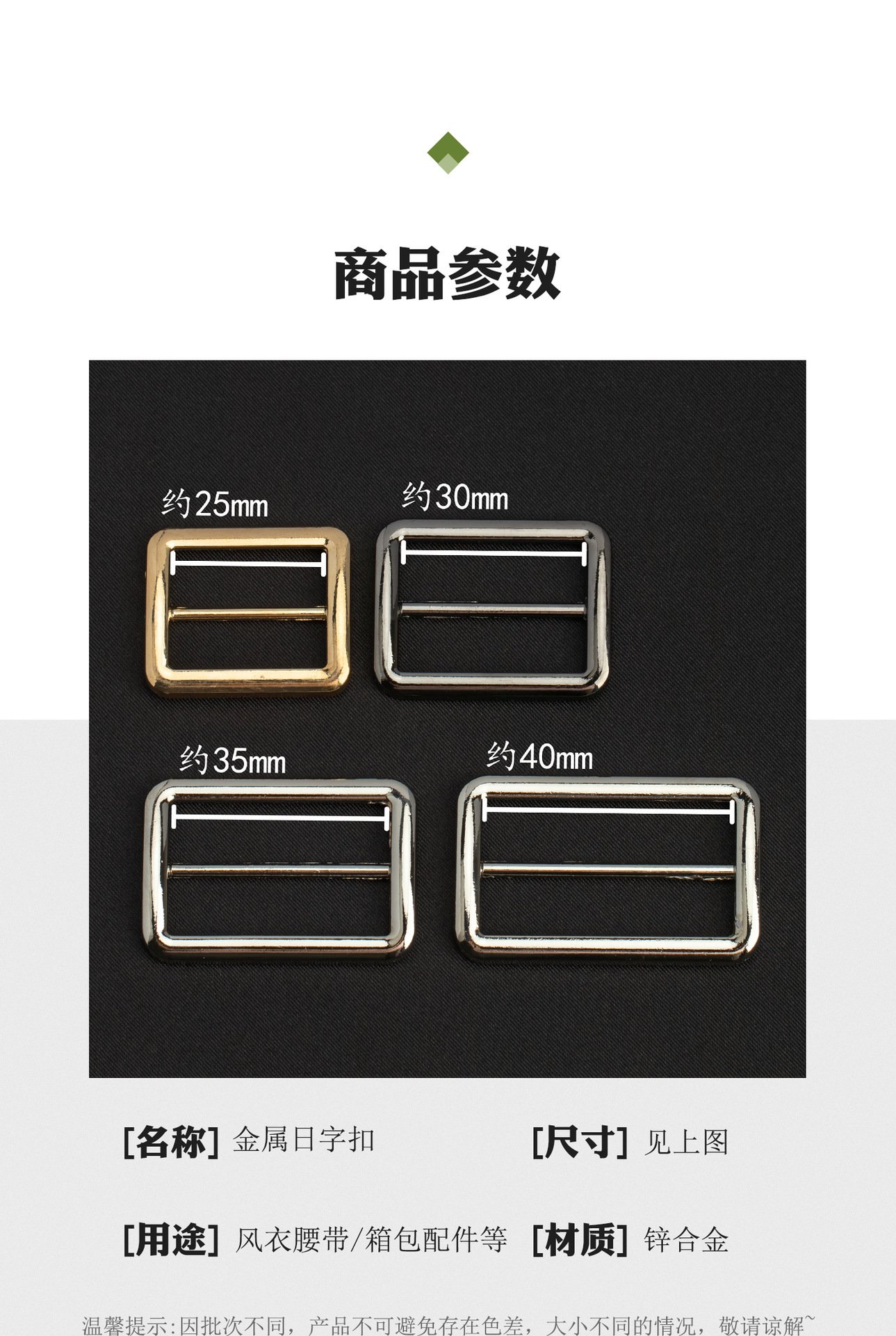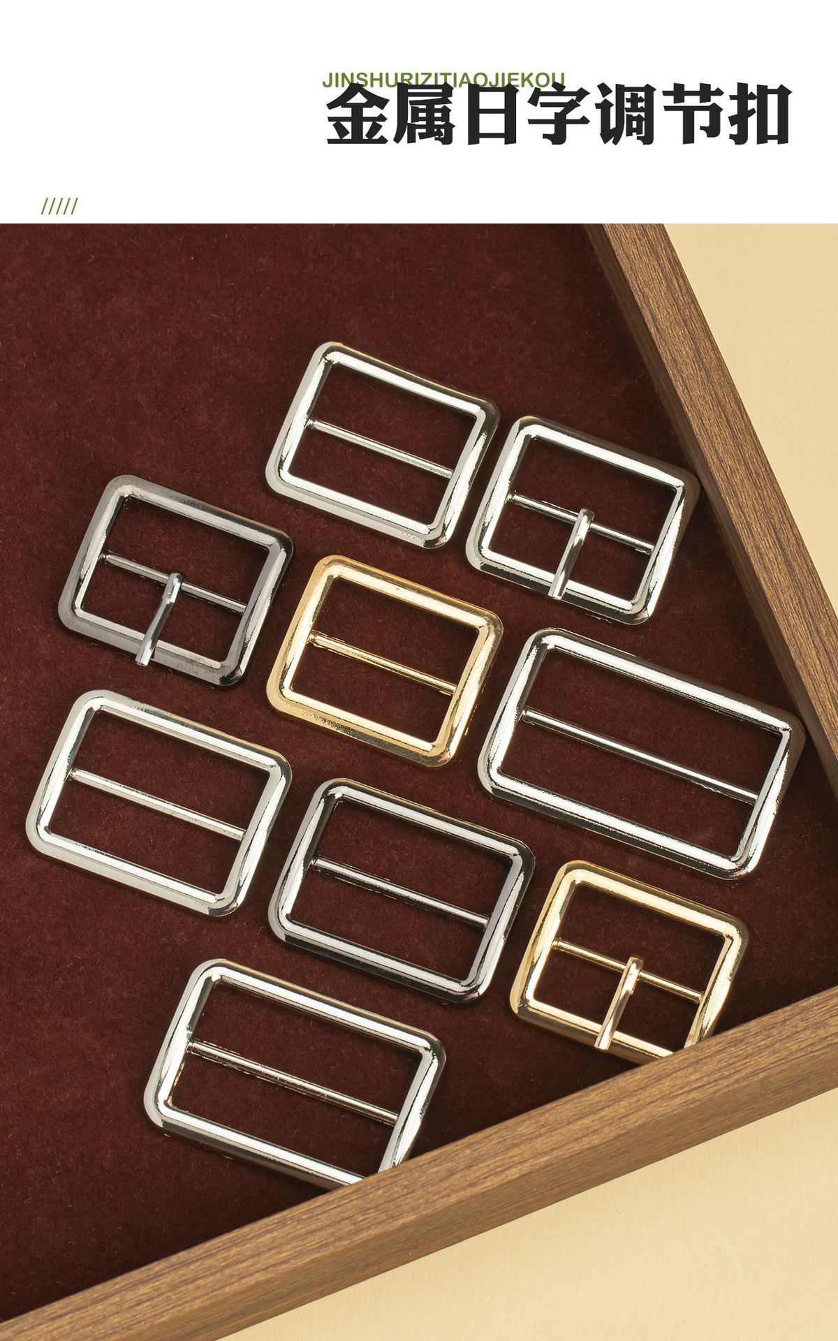 金属扁三档扣圆角防刮伤大衣腰带扣女装服饰调节纽扣锌合金日字扣