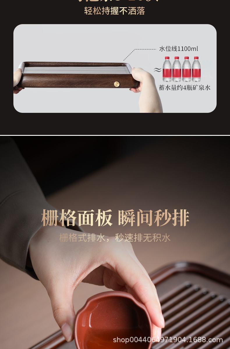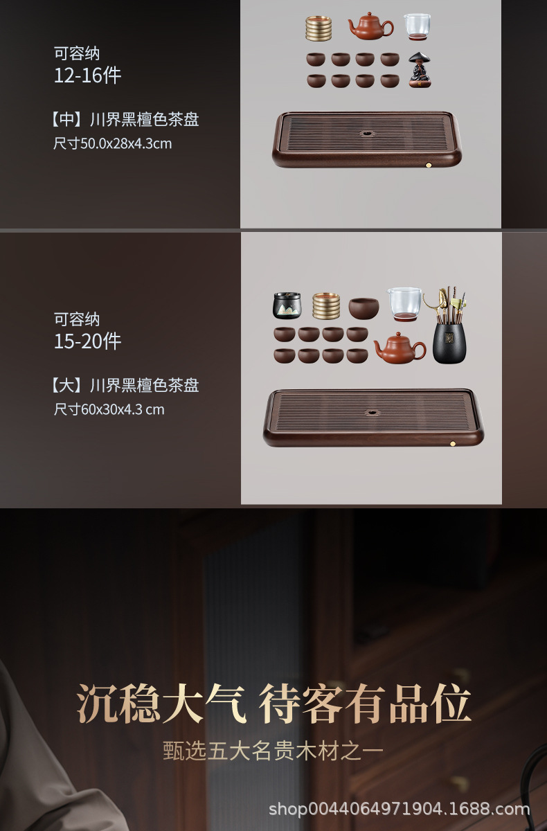 茶盘家用2025新款小型黑檀实木长方形干泡茶台沥水茶托盘储水