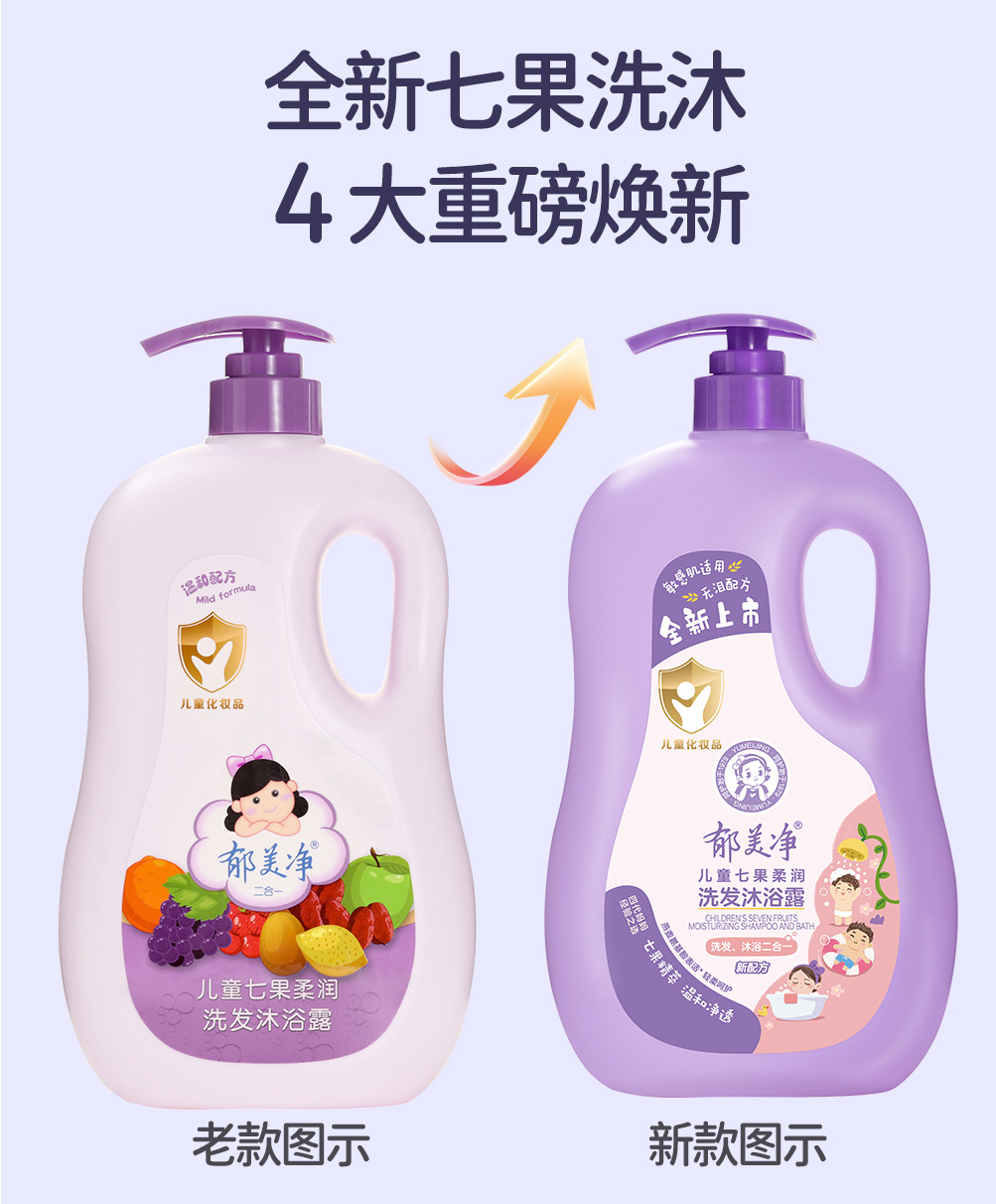 郁美净儿童洗发水沐浴露宝宝七果二合一洗头发大瓶3-6-12岁大容量