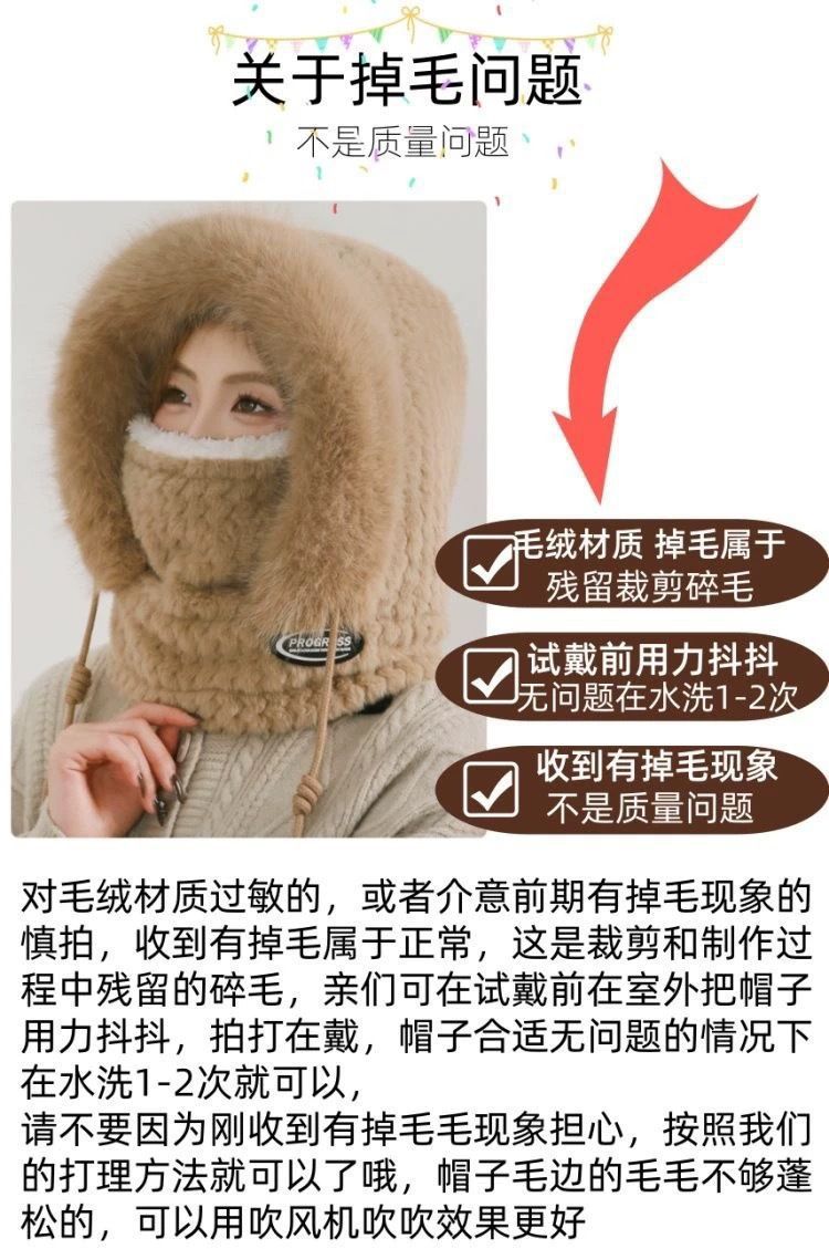 2025爆款拉链口罩一体防护保暖神器骑行帽男女款时尚全面保暖绒帽