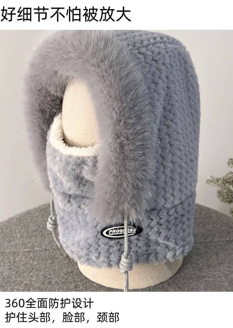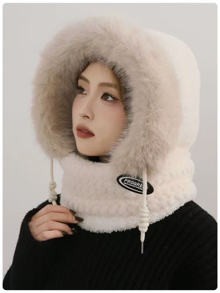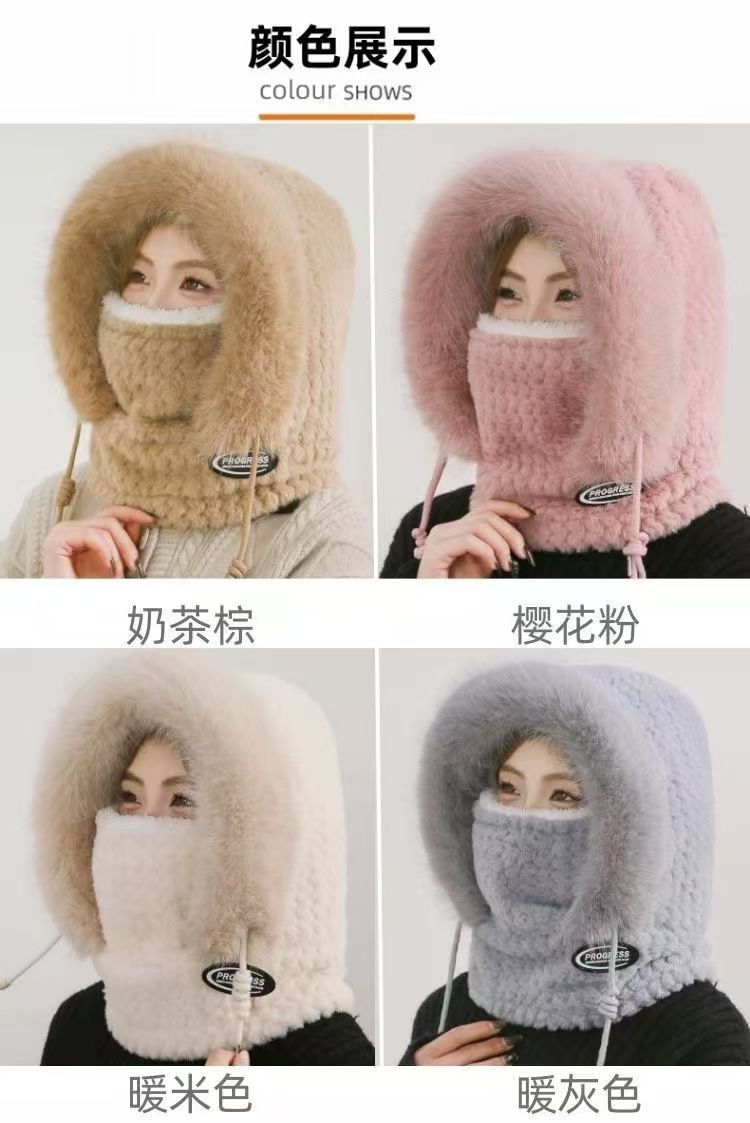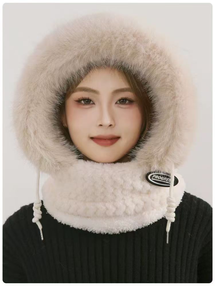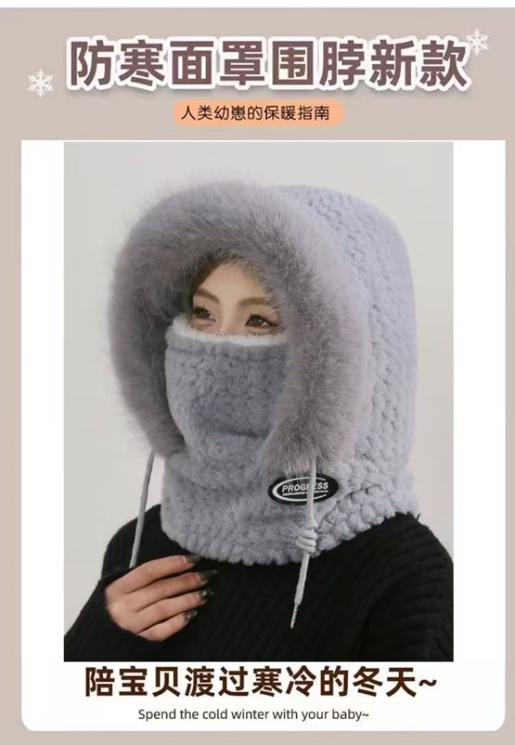 冬季连体帽女时尚通勤百搭套头帽双层加厚护耳保暖骑行御寒围脖帽