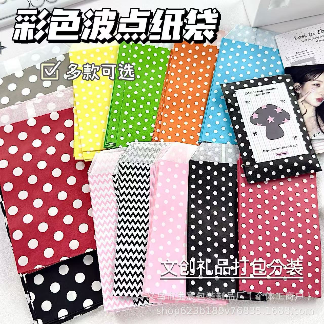 高颜值彩色波点纸袋出卡文创打包袋分装袋diy可爱礼品袋物料打包