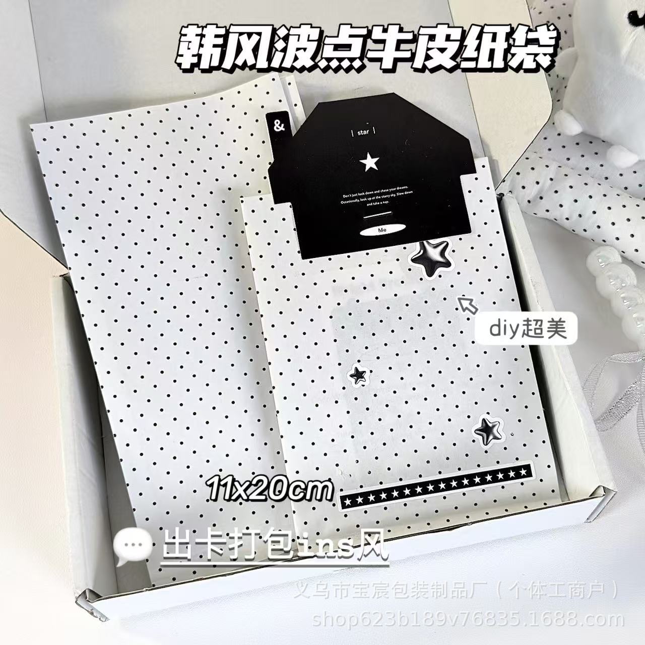 韩风黑白波点牛皮纸袋包装ins风出卡文创打包大容量包装袋礼品袋