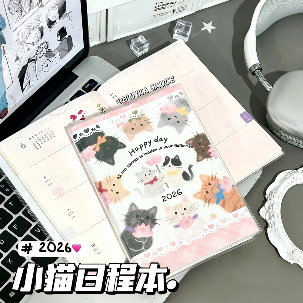 厂家直销2026年新年可爱小猫日程计划B6学生手绘风手账计划日程本