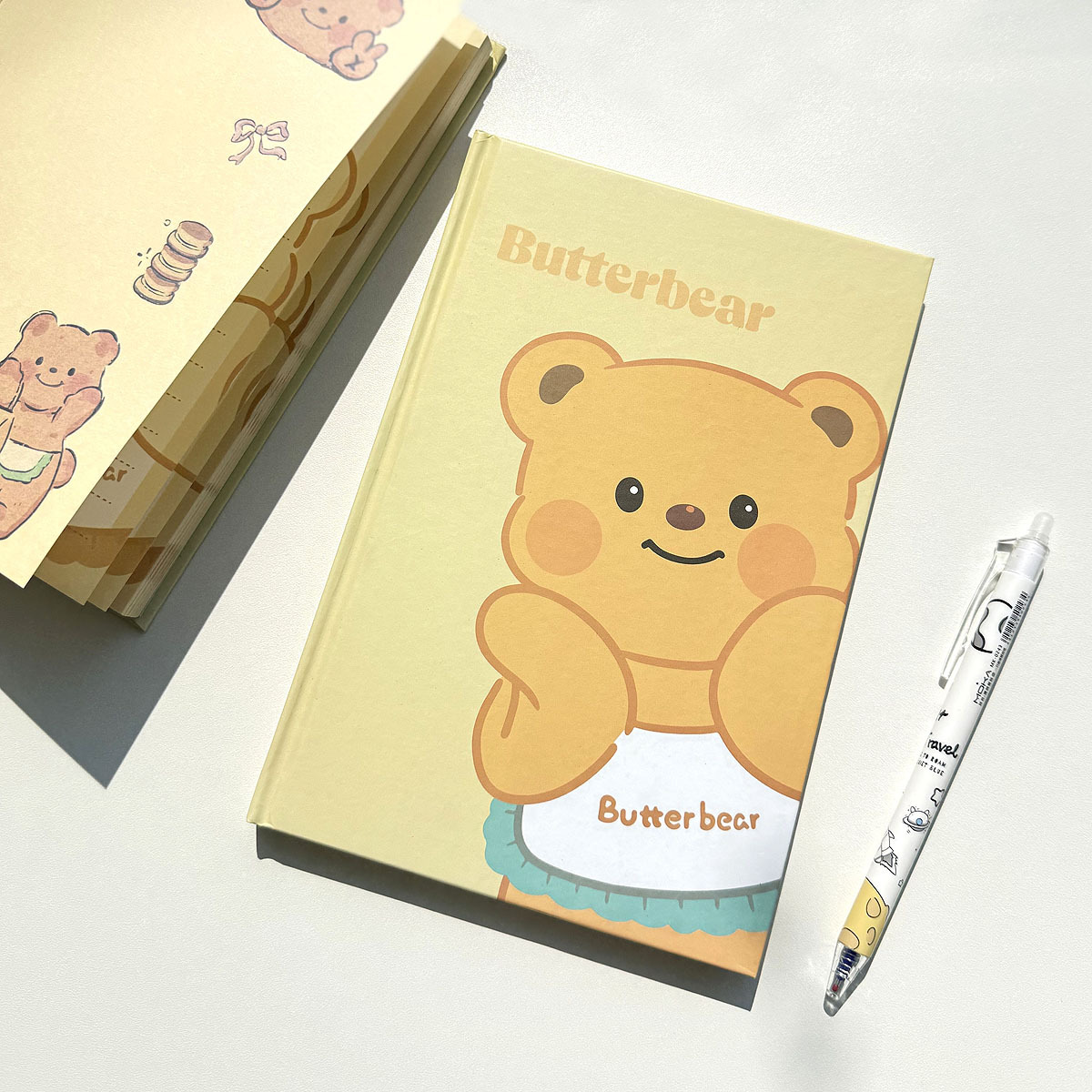 バターの熊のノートの高い顔の値のかわいい漫画の学生の日記の本のA5硬い殻の横線の本のカラーページのノート