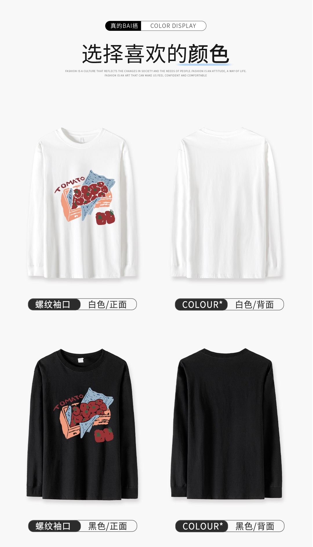 5 螺纹袖口长袖t恤女