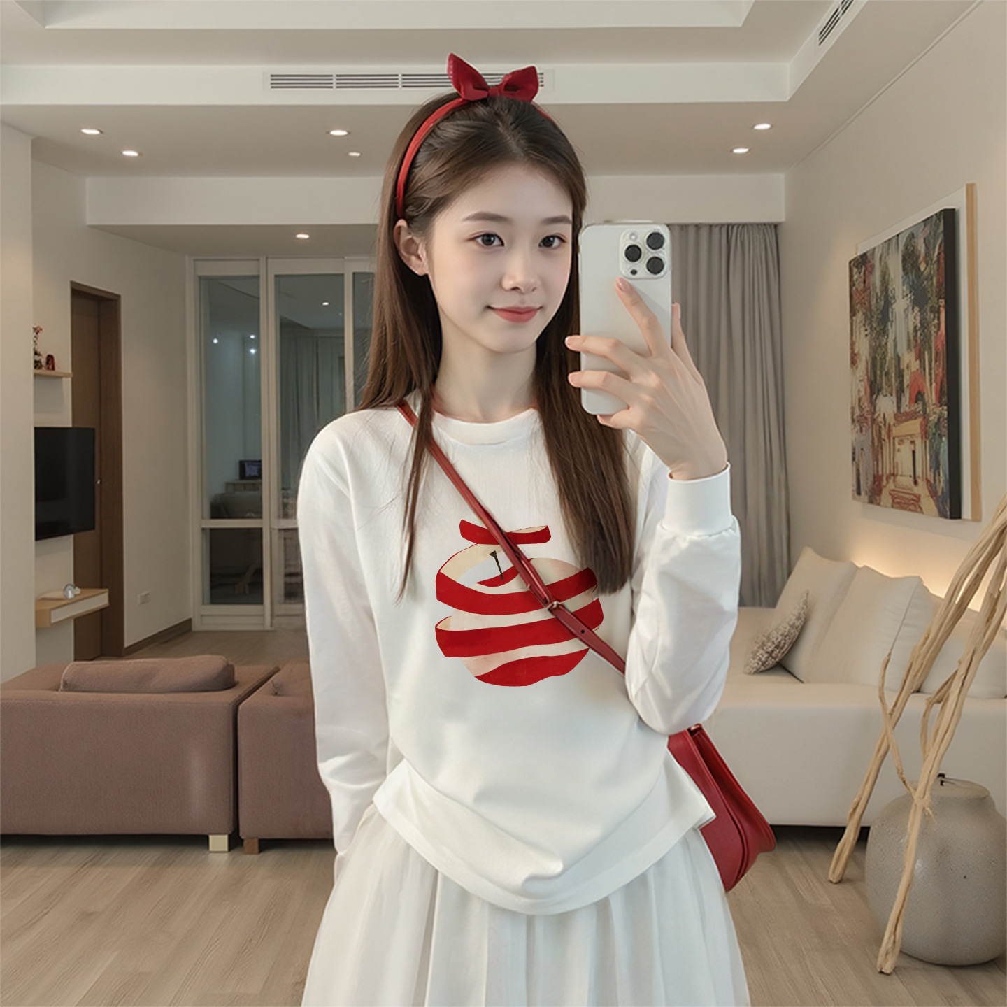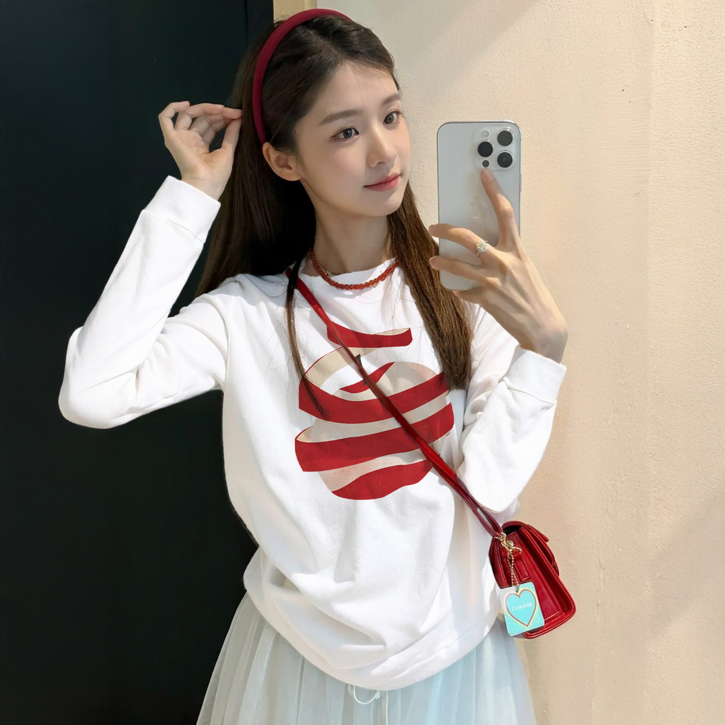 2025新款早秋白色纯棉长袖t恤女氛围感穿搭宽松韩系chic别致上衣