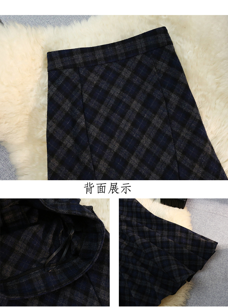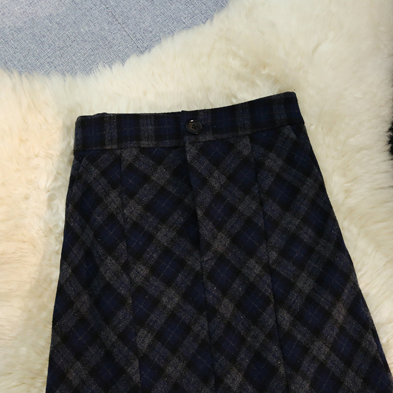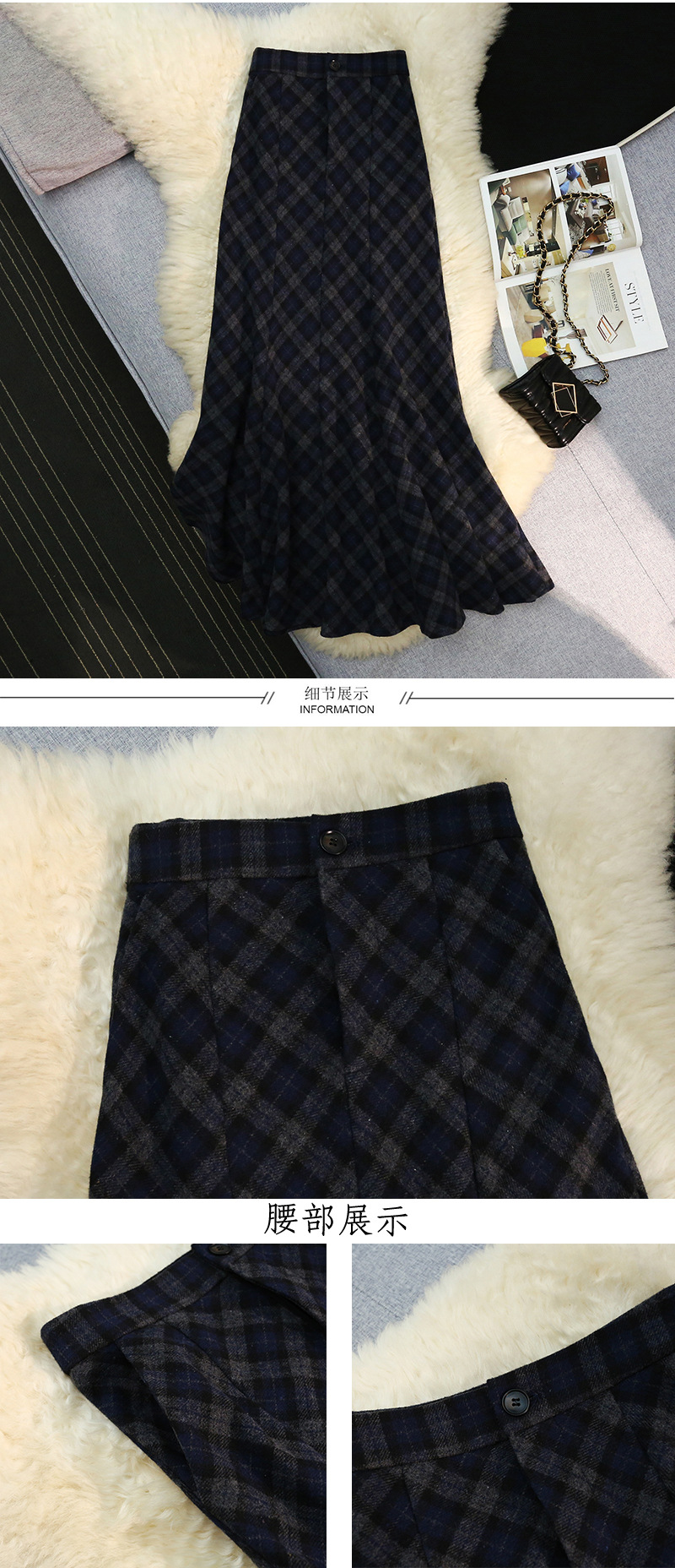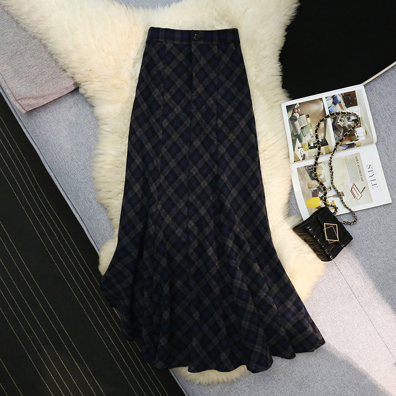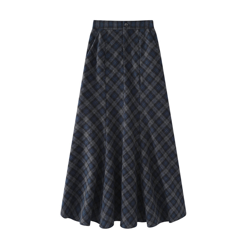 糖糖~2025秋冬毛呢格子磨毛半身裙女秋冬新款加厚A字鱼尾裙子