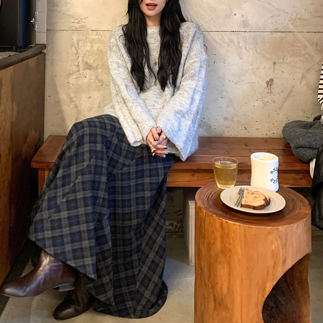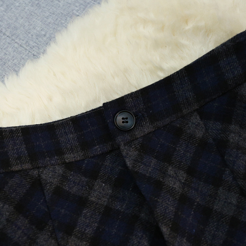 3MER哦哦三妹 斜纹蓝灰格子磨毛半身裙女秋冬新款加厚A字鱼尾裙子