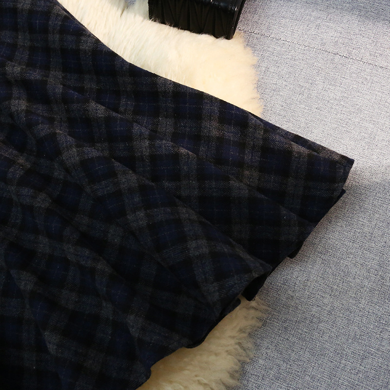 三标齐全 天猫品质 五线打边 斜纹蓝灰格纹磨毛半身裙秋冬加厚