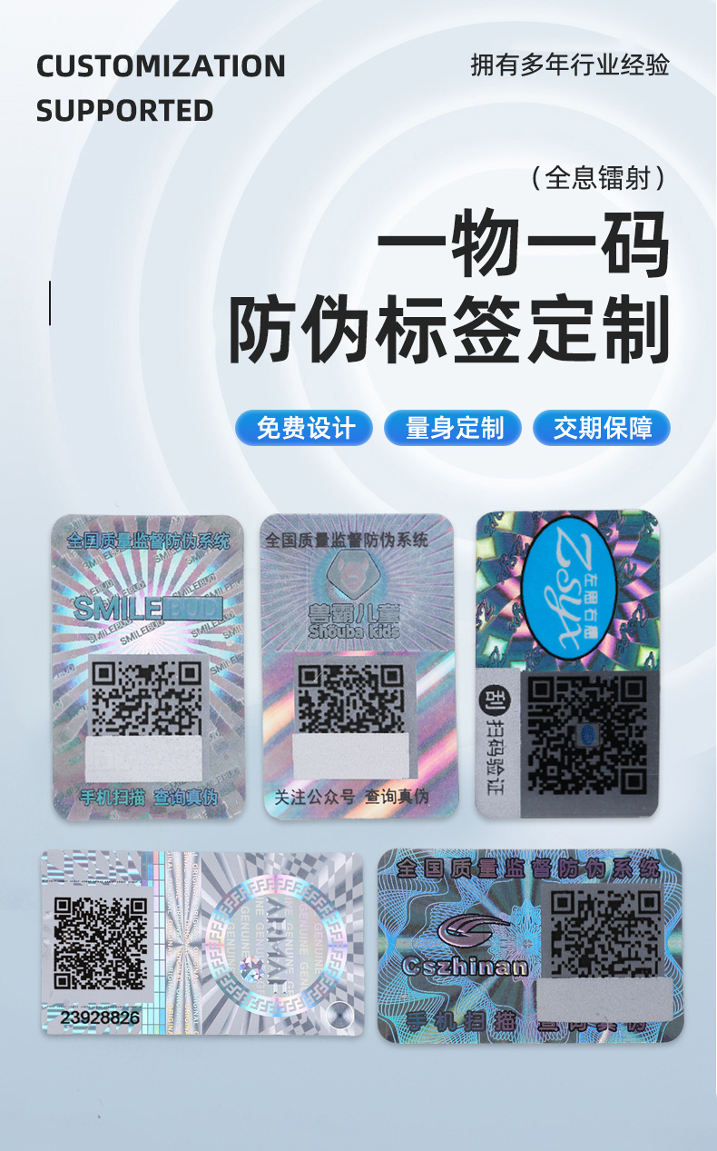 防伪全息二维码贴纸安全标签定制防伪验证系统定制印刷源头厂家