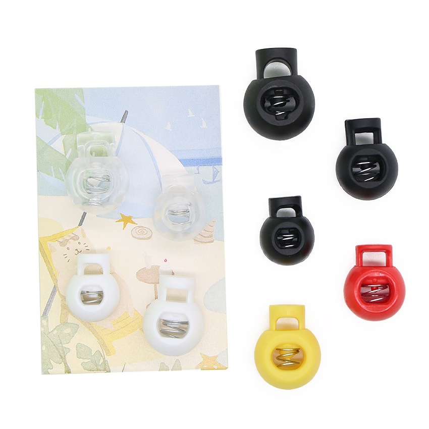 ファッション的なプラスチックのスプリングバックルの球形のスプリングバックルのボールの単孔の口の帽子のロープは白黒の透明なスプリングバックルを掛けます。