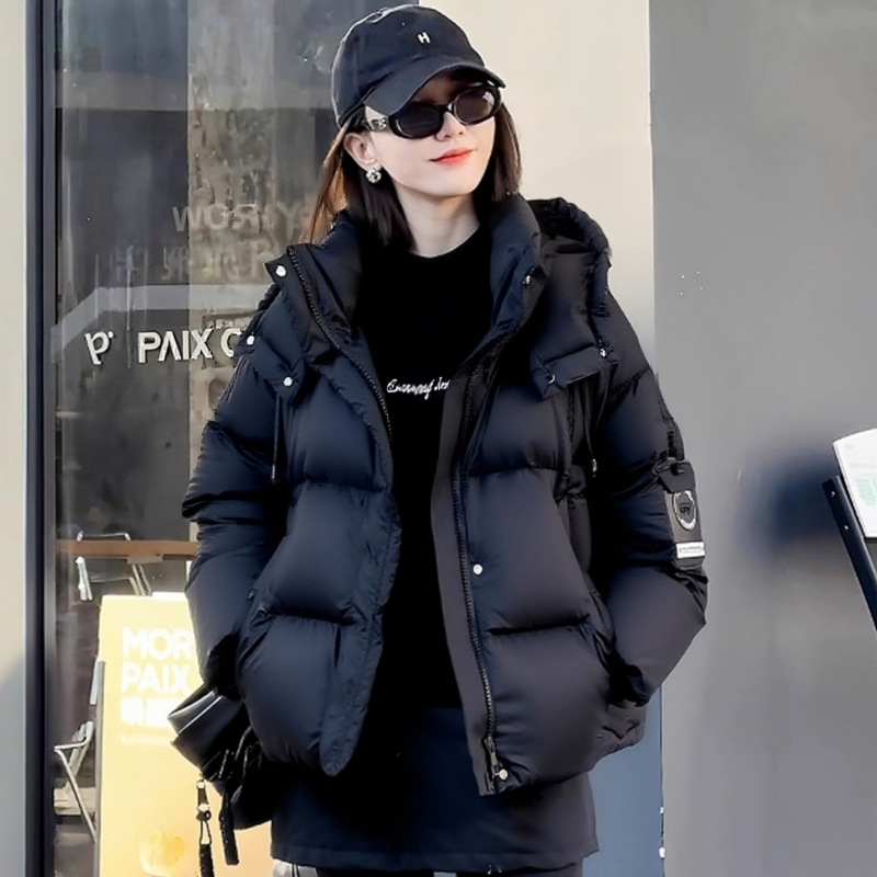 2025年冬季新款韩版短款连帽高级感棉服女设计感宽松休闲加厚外套