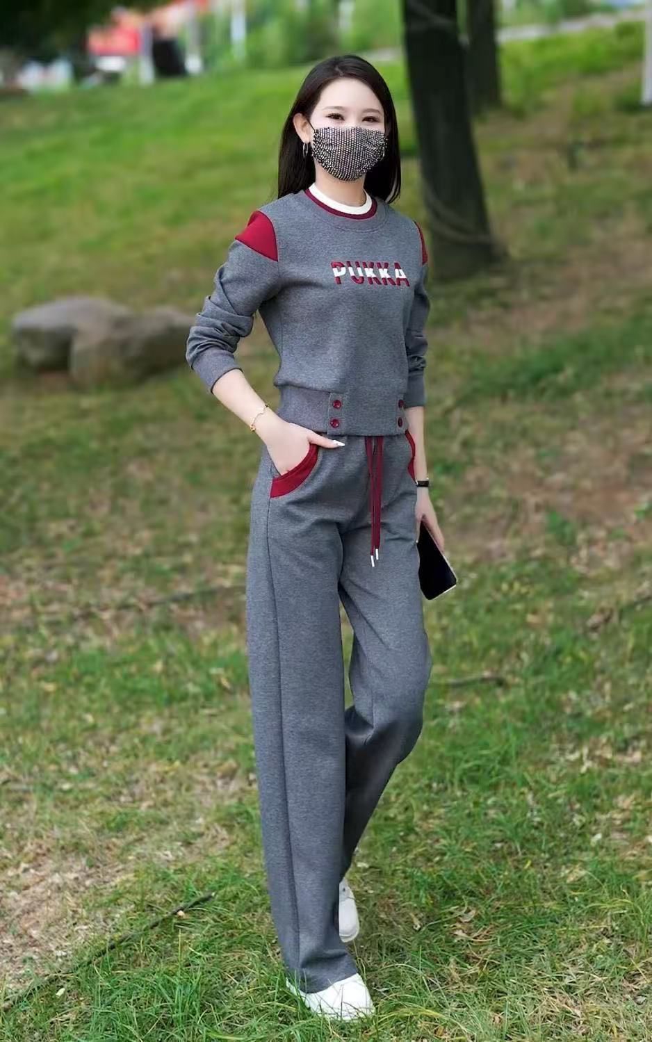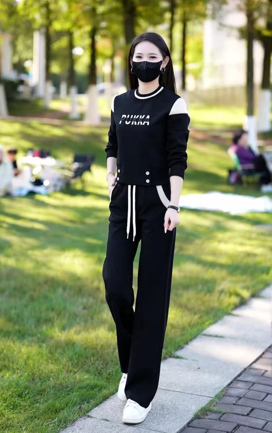 2026年春秋新作 レディース カジュアルスポーツウェアセット 韓国風 ゆったりおしゃれ スウェットシャツ ワイドパンツ 上下セット