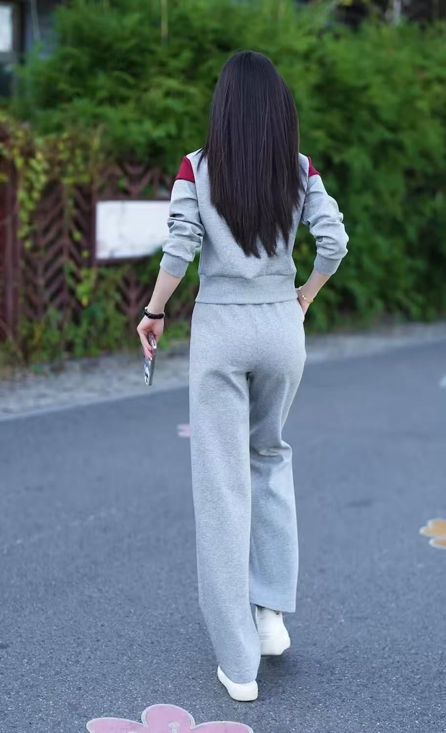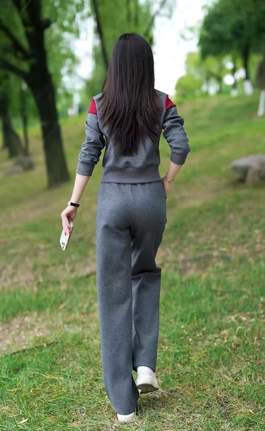 休闲运动套装女春秋季2025新款时尚洋气显瘦立领卫衣阔腿裤两件套