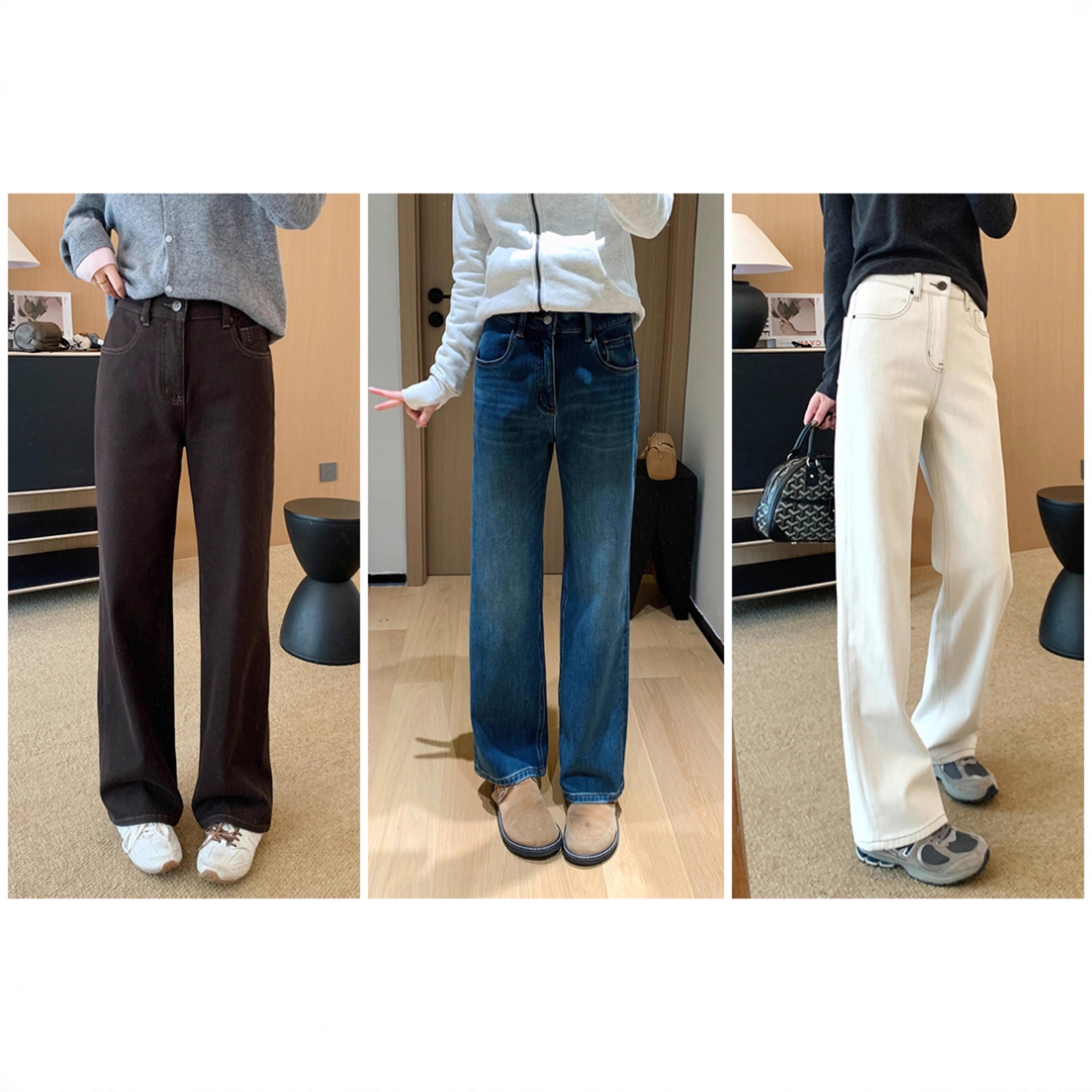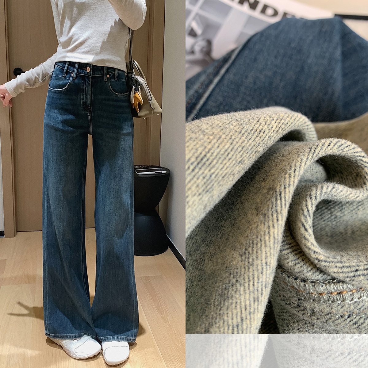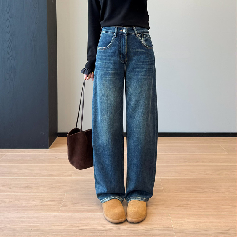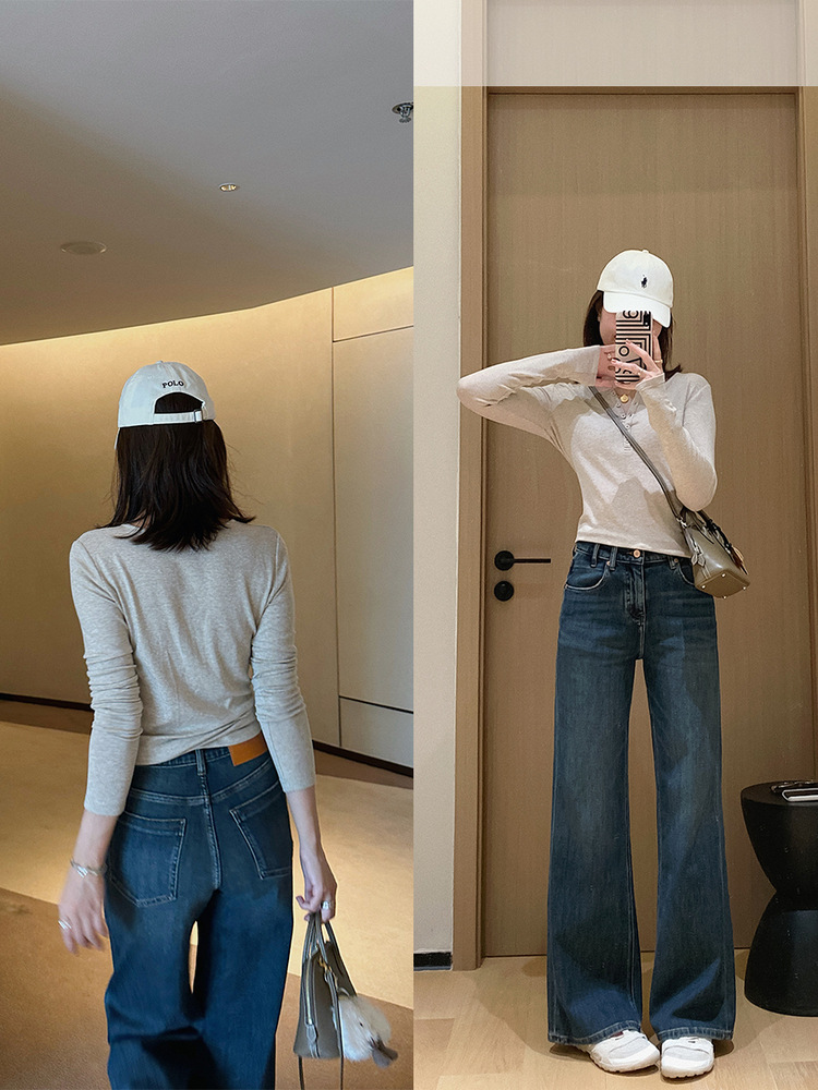力荐双版本酵洗手擦猫须直筒微喇阔腿牛仔裤!
