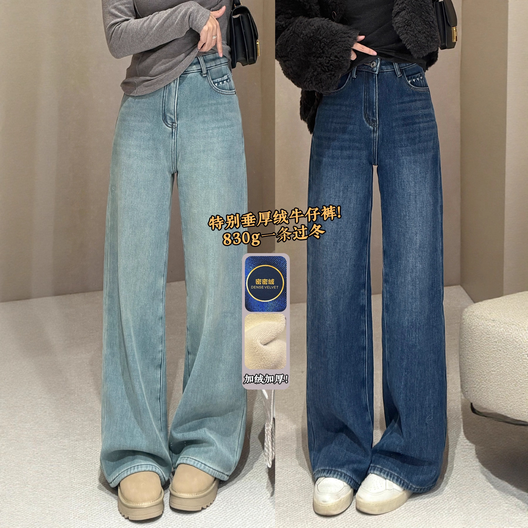 直筒阔腿拖地微喇裤型,包容性qiang