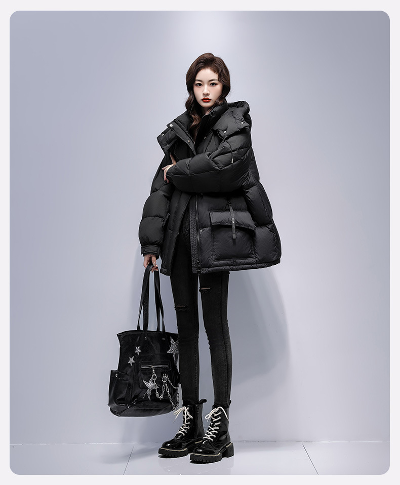 2025 新しい冬の女性の韓国スタイルのショートフード付きダウンコットンジャケットカジュアルルーズ厚いコットンジャケット