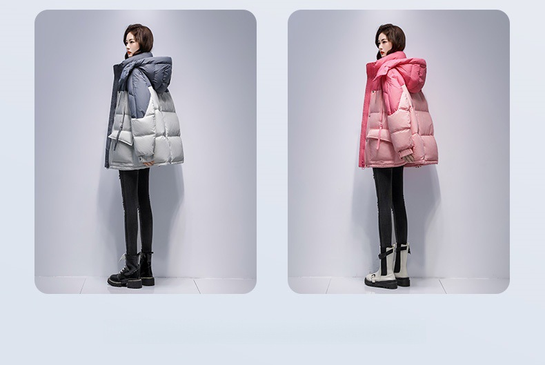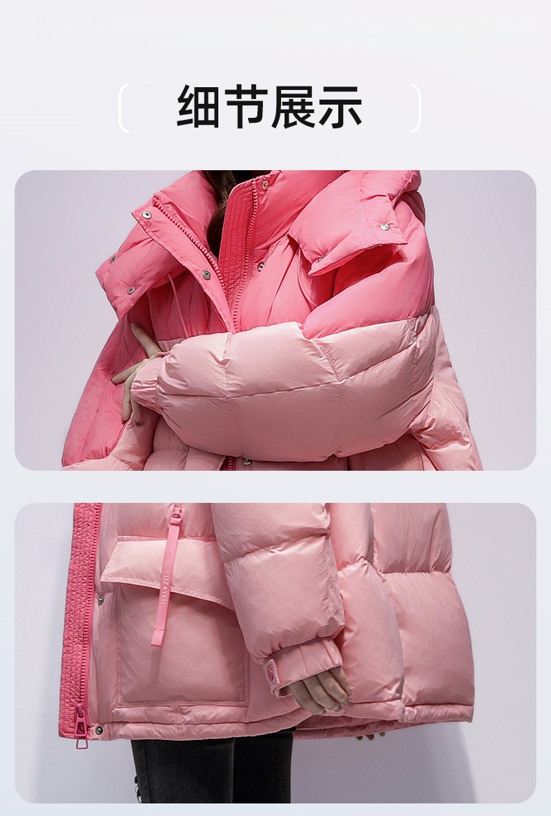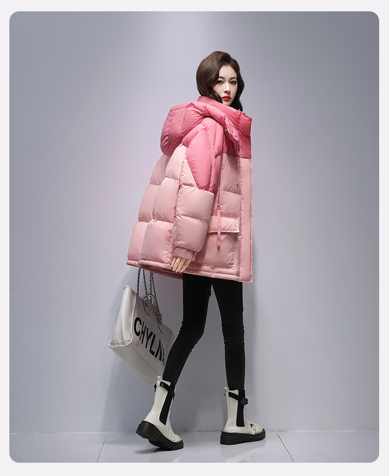 2025年冬季新款韩系中长款棉服女时尚休闲显瘦蓬松拼色保暖外套