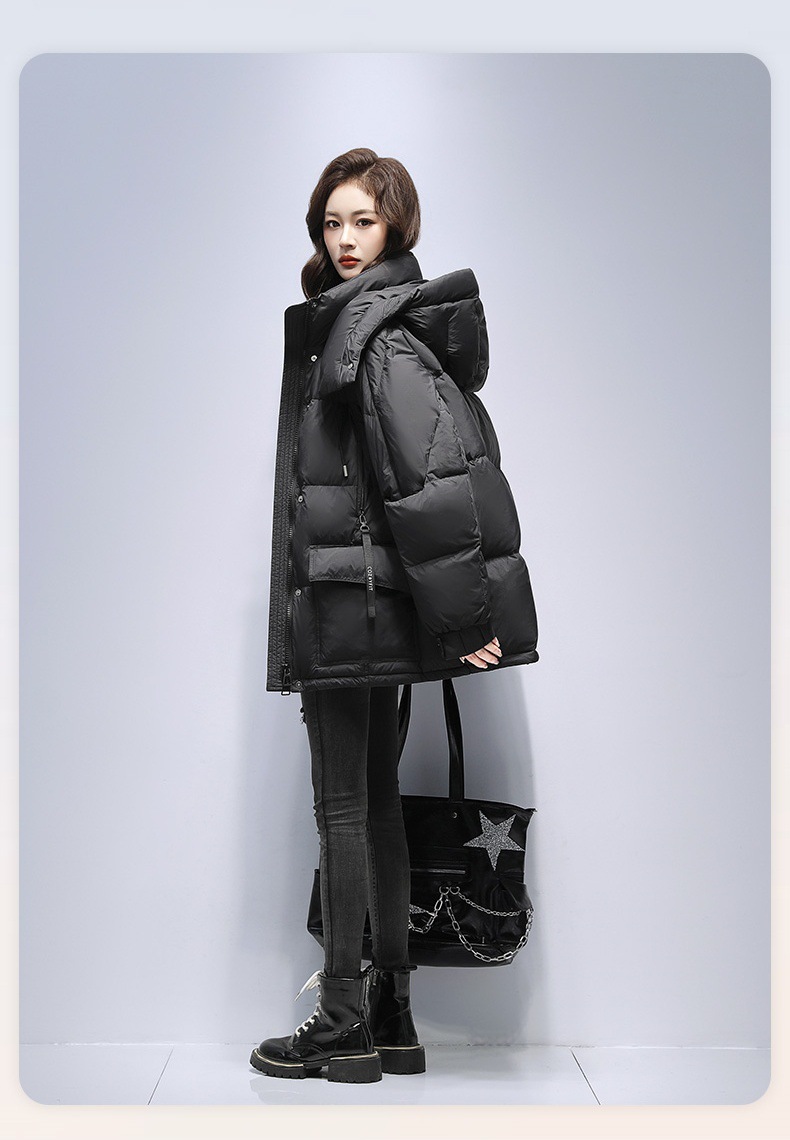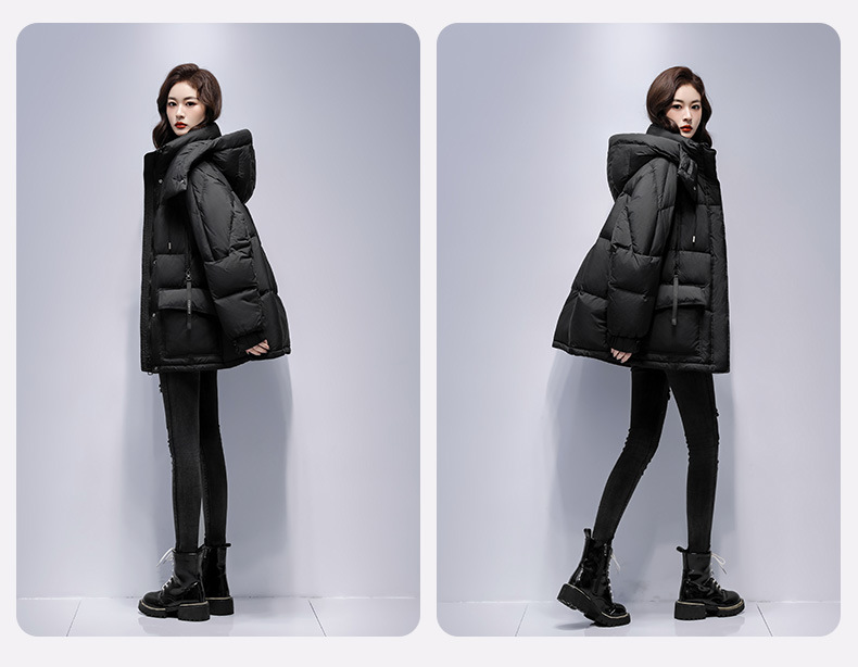 2025年の新型冬の大きいサイズの羽毛の綿服の女性の中で長いタイプの韓国版の綿服のゆったりした綿入れの上着は厚いパンの服を着ます。