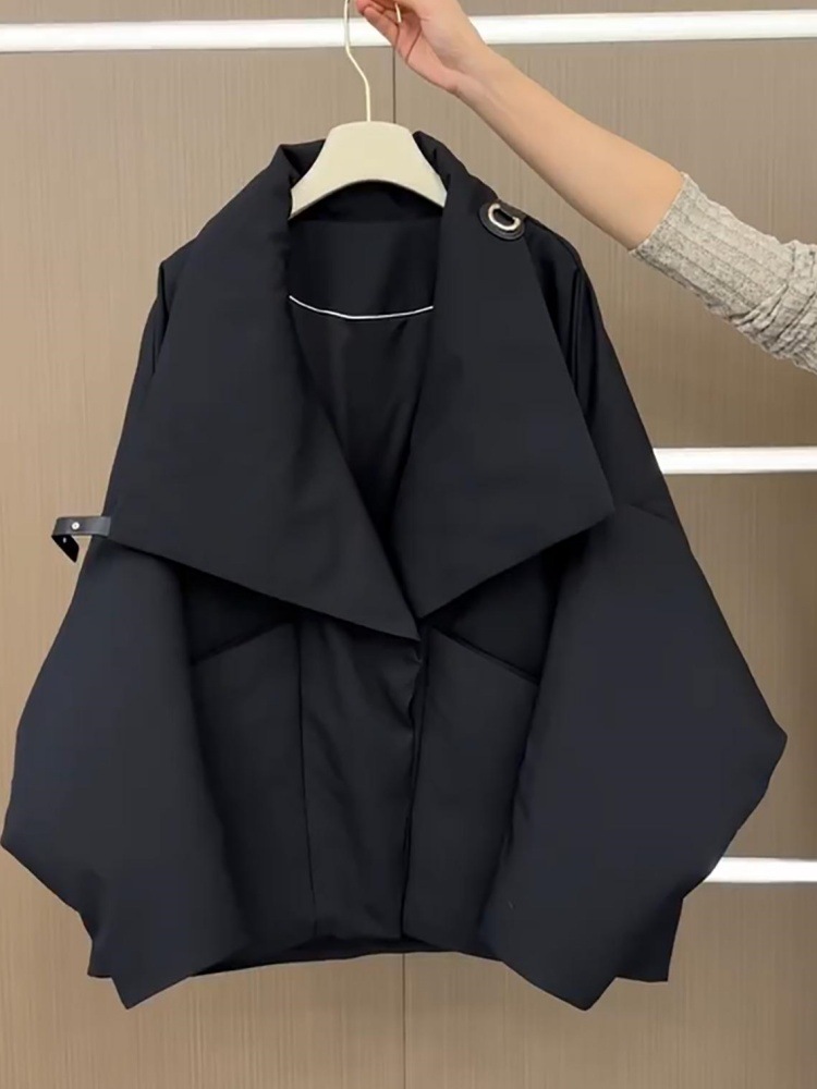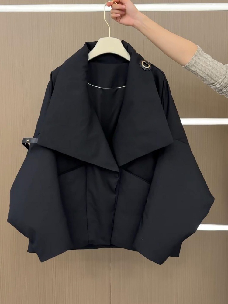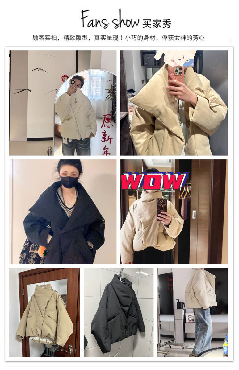 2025年冬季新款韩系短款大翻领棉服女设计感时尚宽松面包服外套
