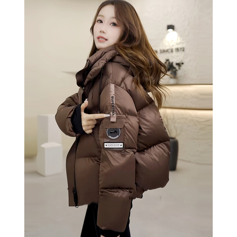 2025 新しい冬の女性の韓国スタイルのショートフード付きダウンコットンジャケットカジュアルルーズ厚い綿ジャケット