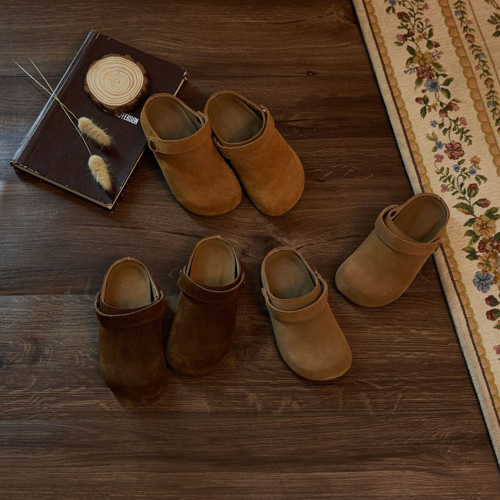 真皮童靴レトロソフト底ファッション韓国版牛筋底br 2512親子ベーケン半スリッパ