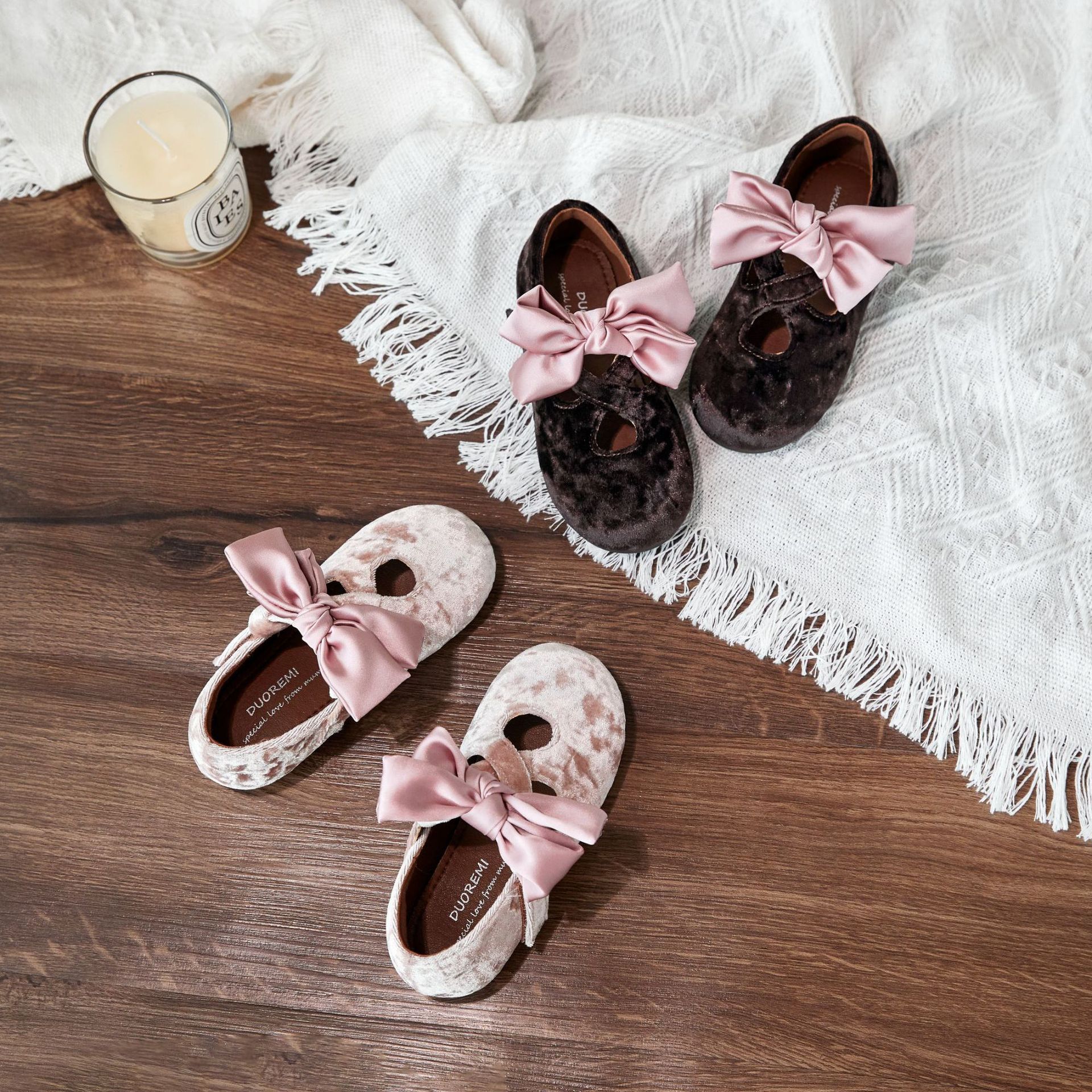 Duoremi 韓国版 BR2517 ダブルリボンプリンセスシューズ 秋の新作 おしゃれな牛革靴