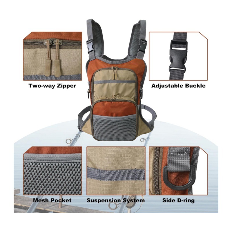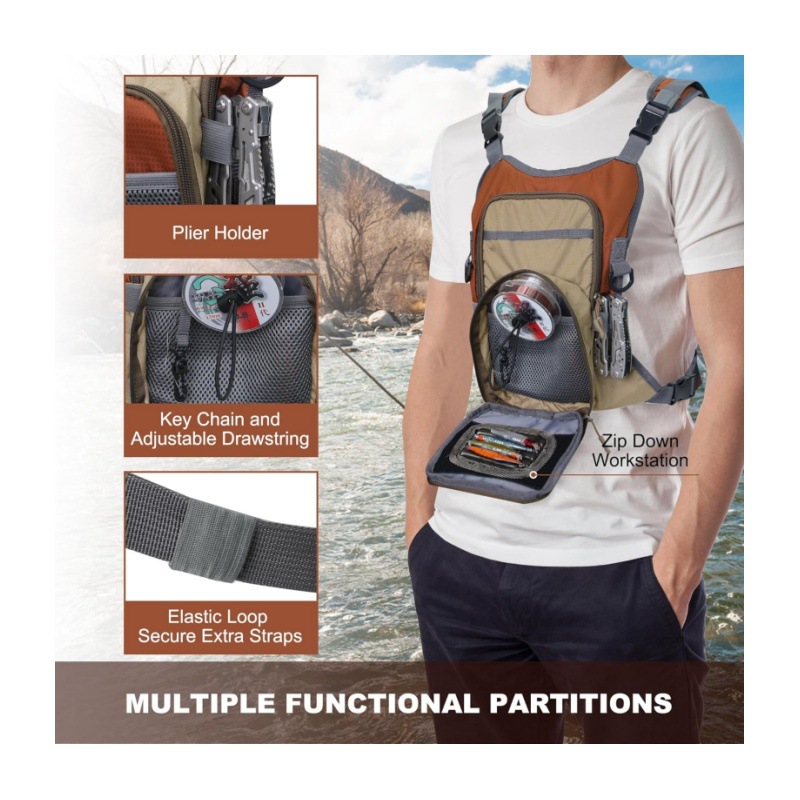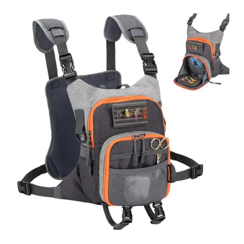 飞钓胸包背心包 – 钓鱼钓具收纳可容纳 2 个飞箱户外飞钓包