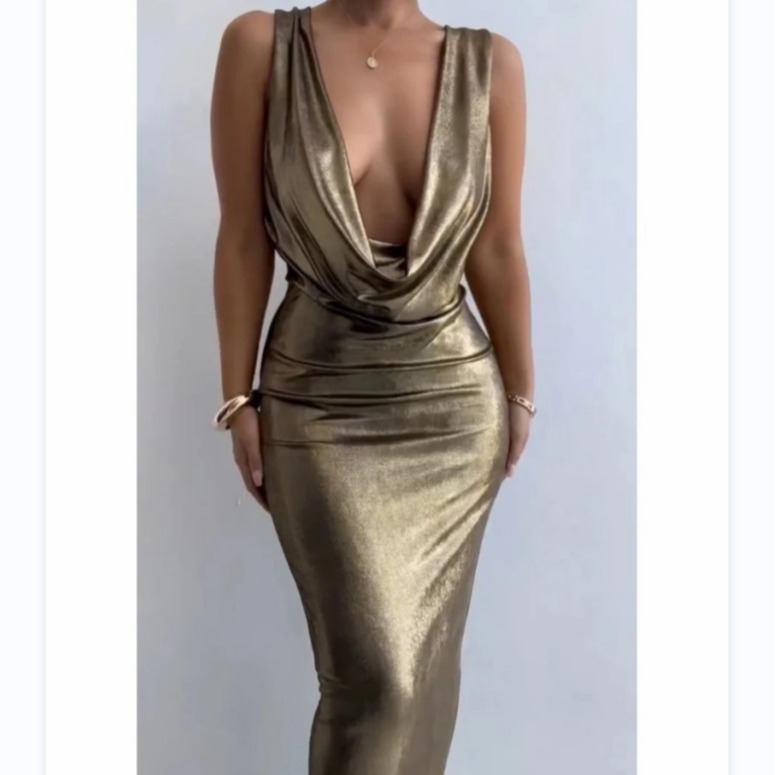 2025年欧美跨境夏季新款亮片长裙名媛风吊带露背亮片连衣裙
