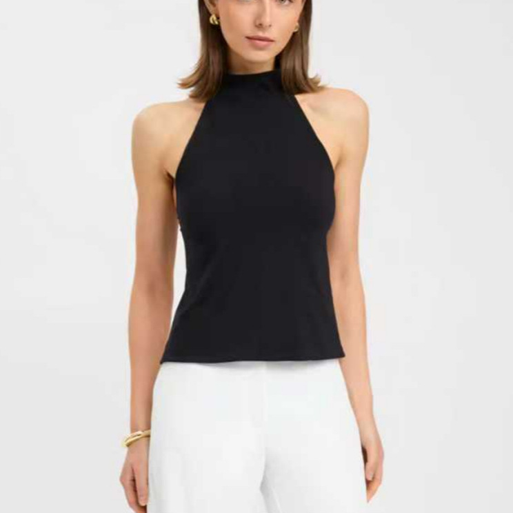 亚马逊外贸时尚挂脖女裙高级感露背亮片短裙潮流百搭无袖连衣裙