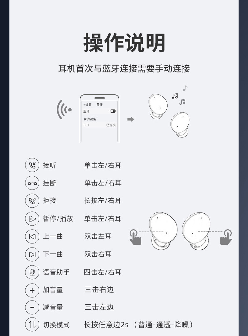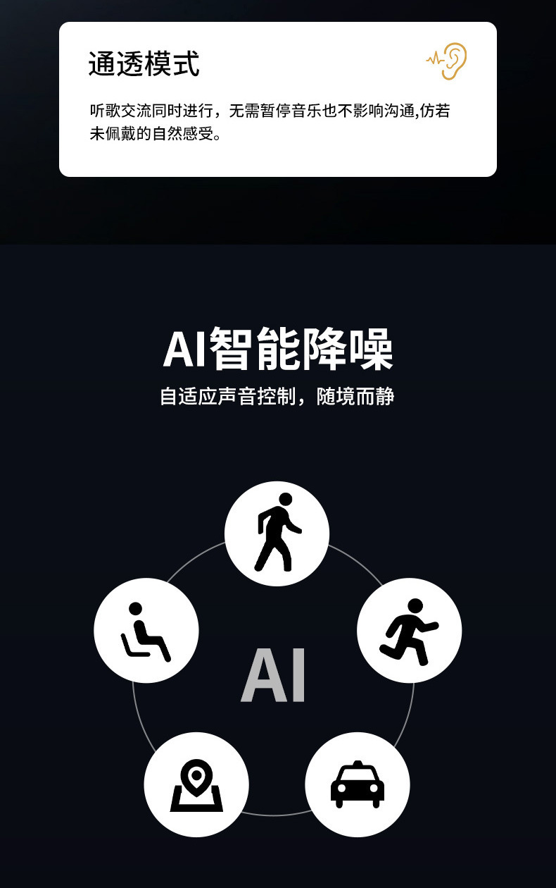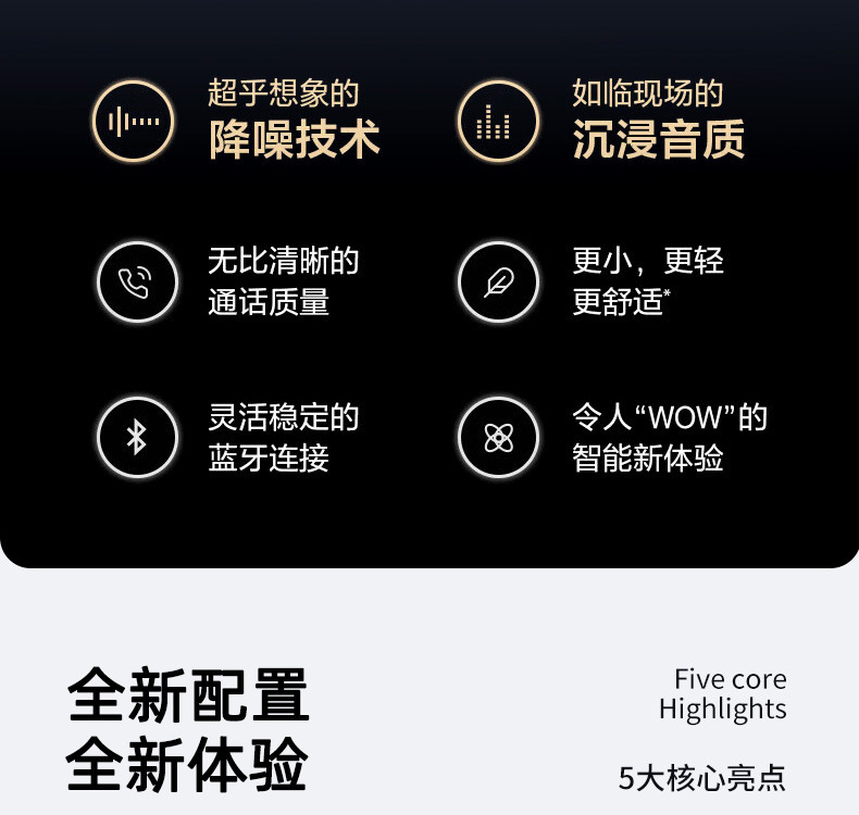 功能 降噪,超长续航,通话功能,语音控制,支持音乐