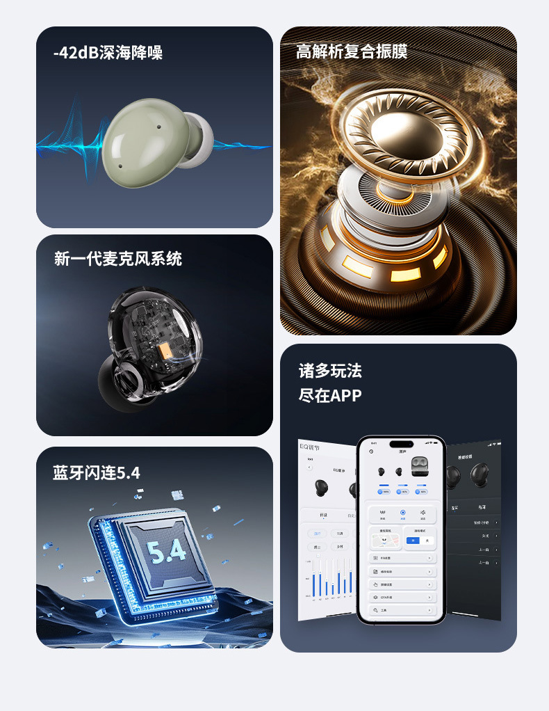 跨境耳机无线蓝牙音质好降噪高音质入耳式长续航私模睡眠超长续航