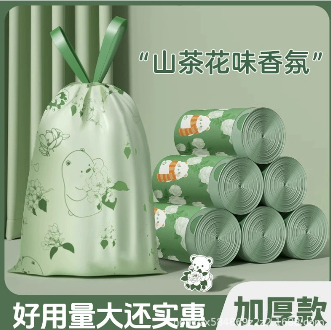 椿よもぎ風味のゴミ袋家庭用厚みのあるポータブル極厚キッチン防蚊巾着ゴミ袋