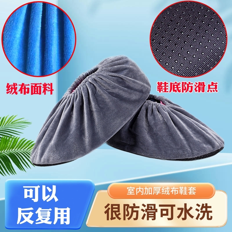 绒布鞋套反复用加厚水洗劳保室内防滑防尘耐磨客人家用鞋脚套