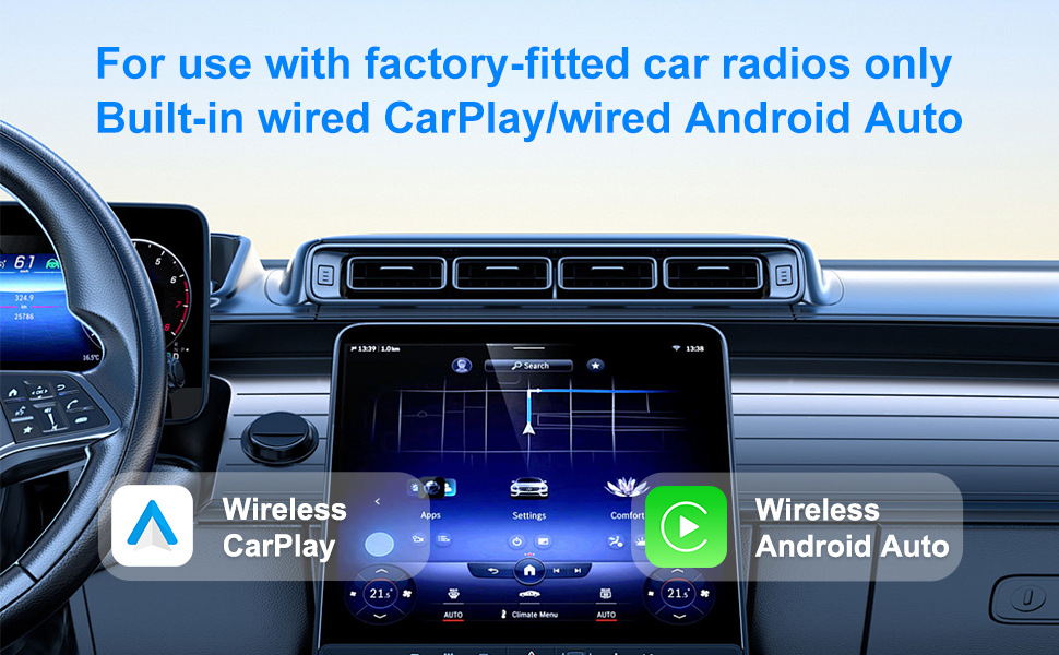 有線CarPlayをワイヤレス化するスマート接続カーボックス、純正車載機用アダプター(Android/Apple対応)