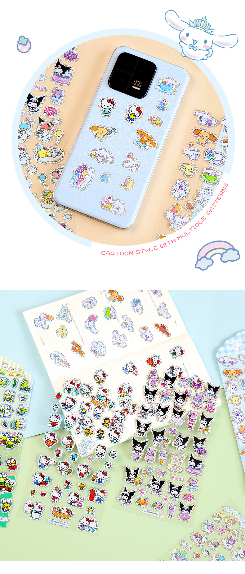 漫画かわいいサンリオ携帯電話ステッカーdiy手帳装飾素材レーザーステッカー文房具対外貿易卸売り