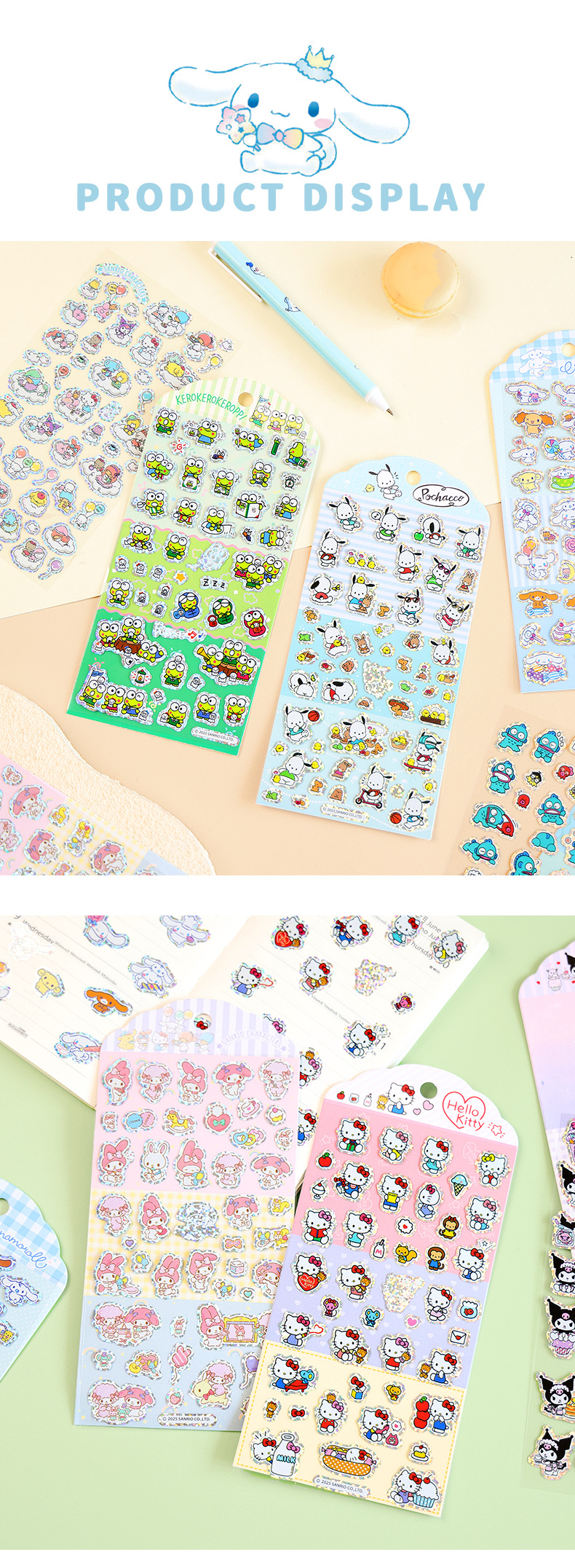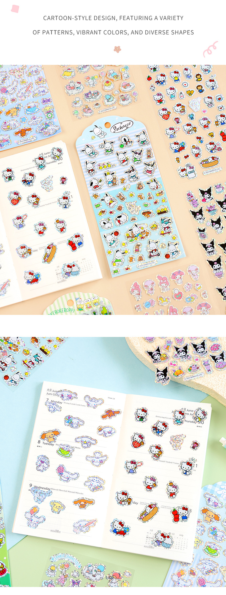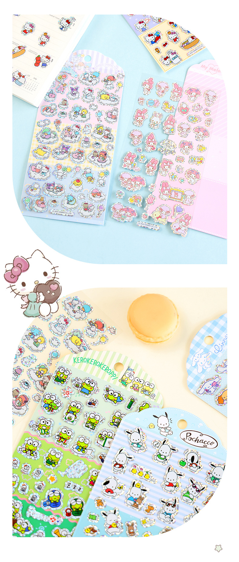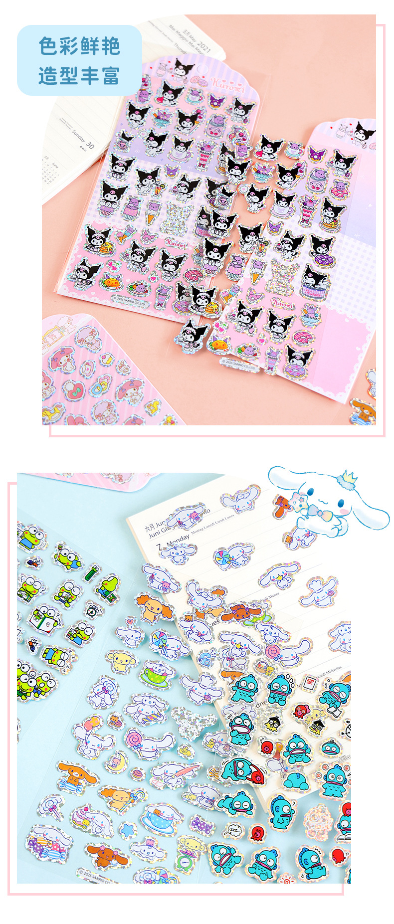 港版卡通三丽鸥银边贴纸闪闪可爱儿童奖励贴画diy手账装饰素材