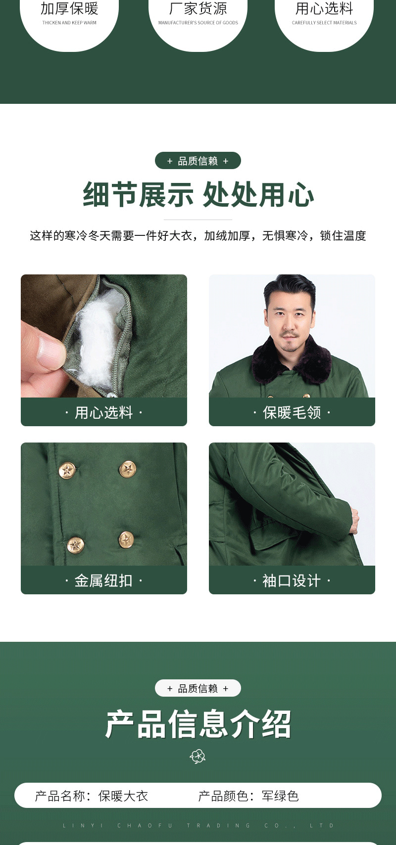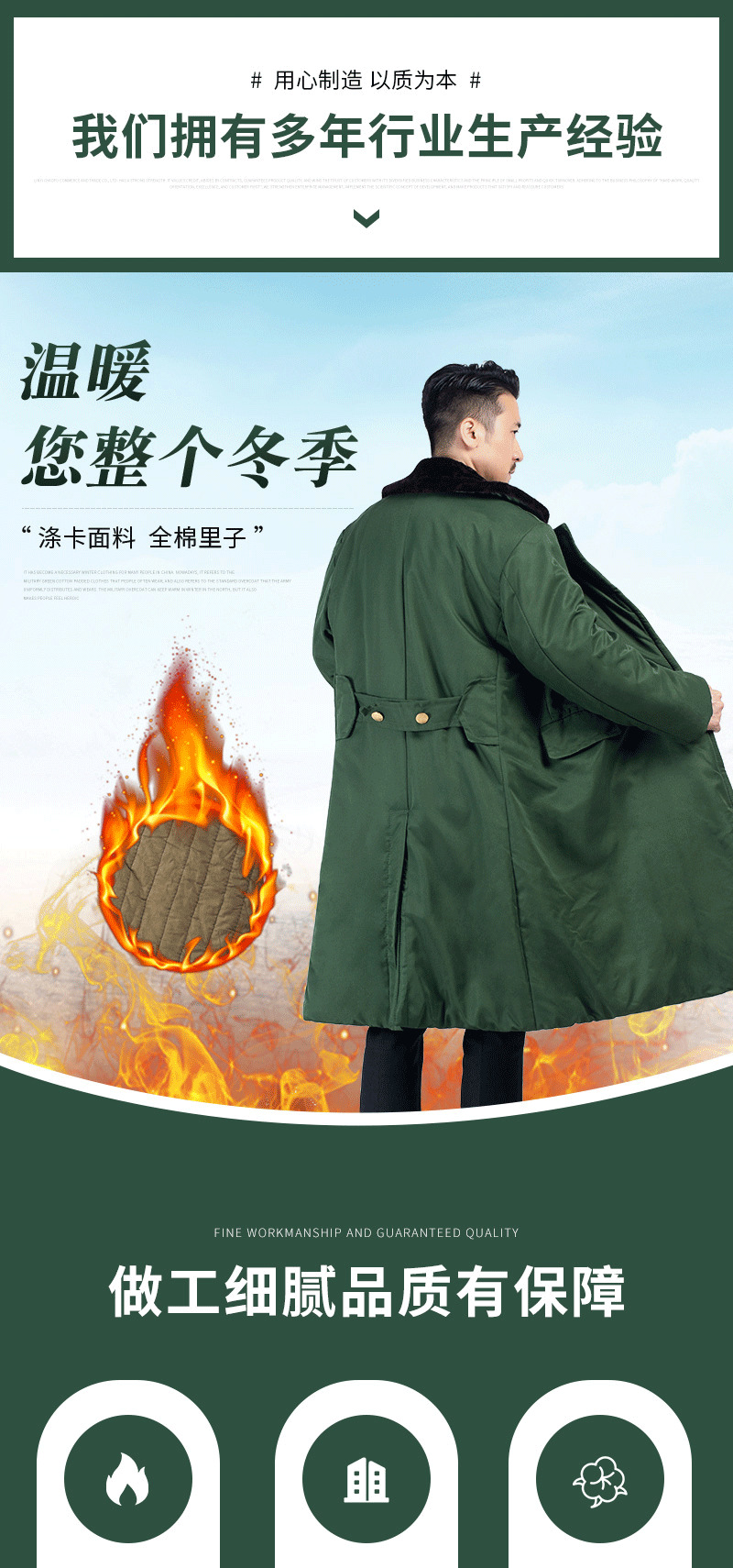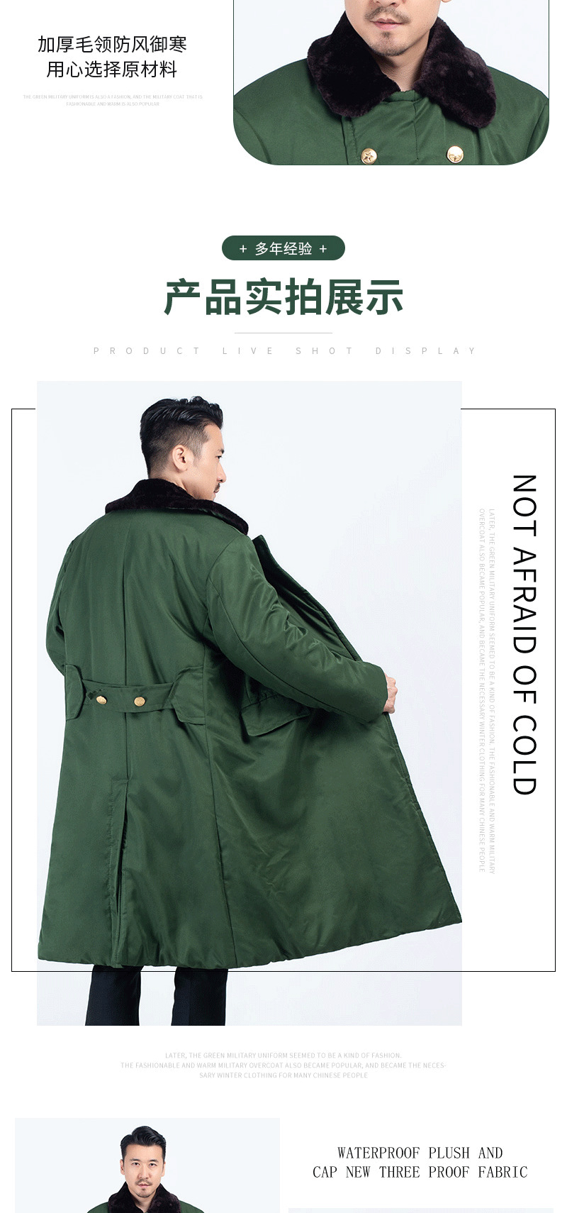 批发涤卡面料纯棉里子加厚绿色棉大衣 冷库劳保安东北军大衣防寒