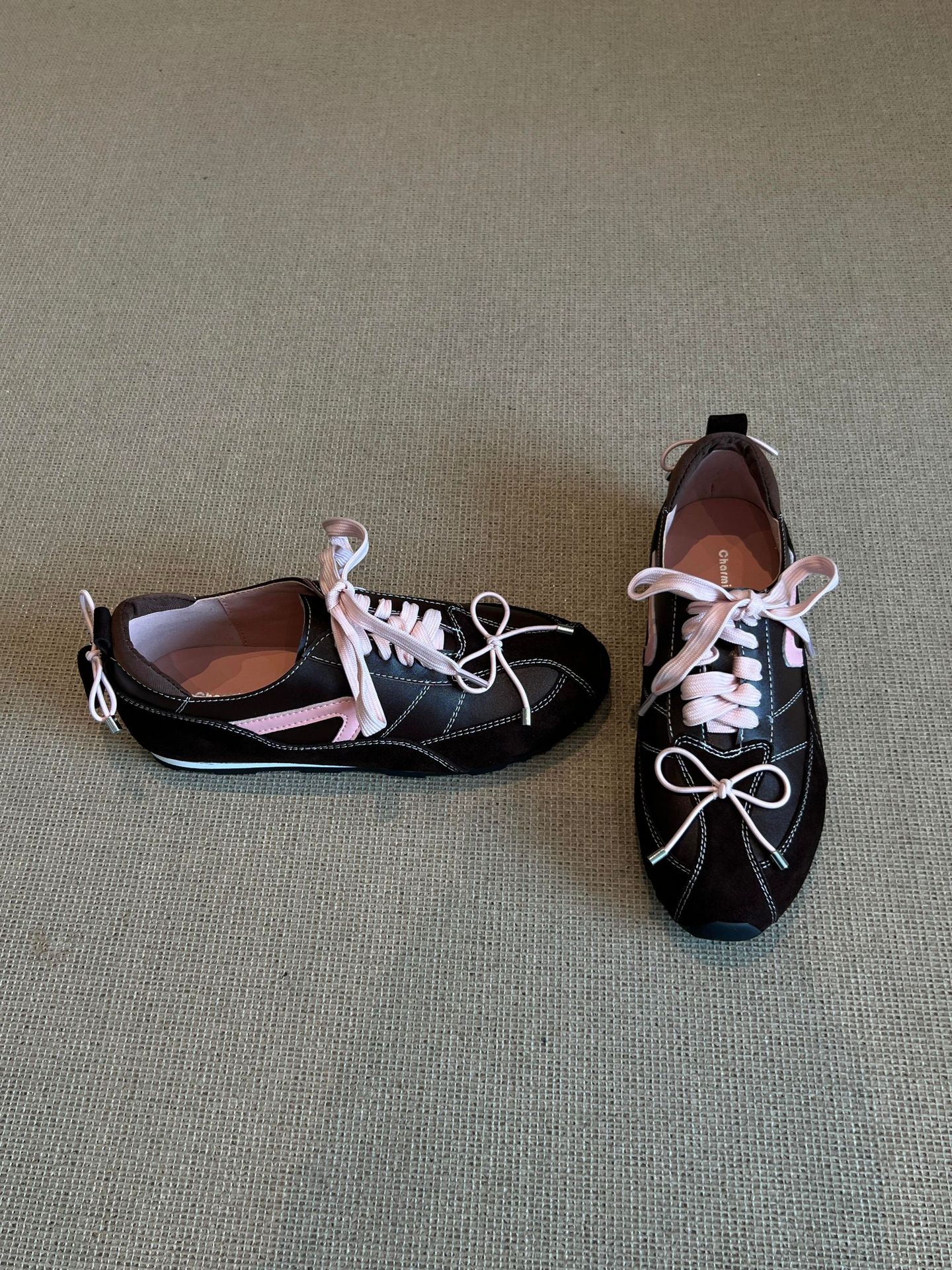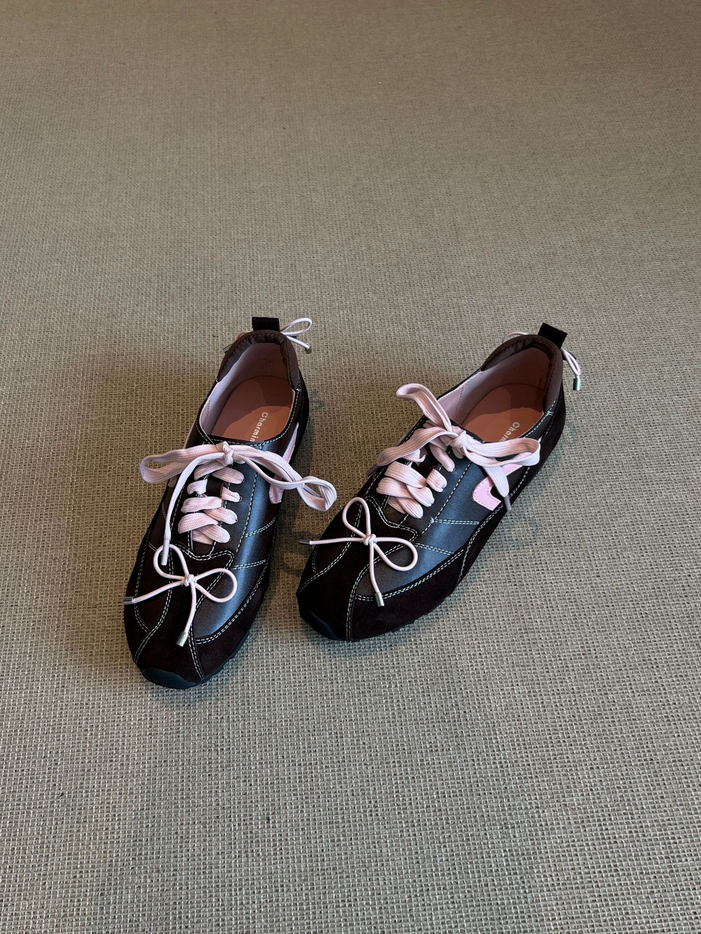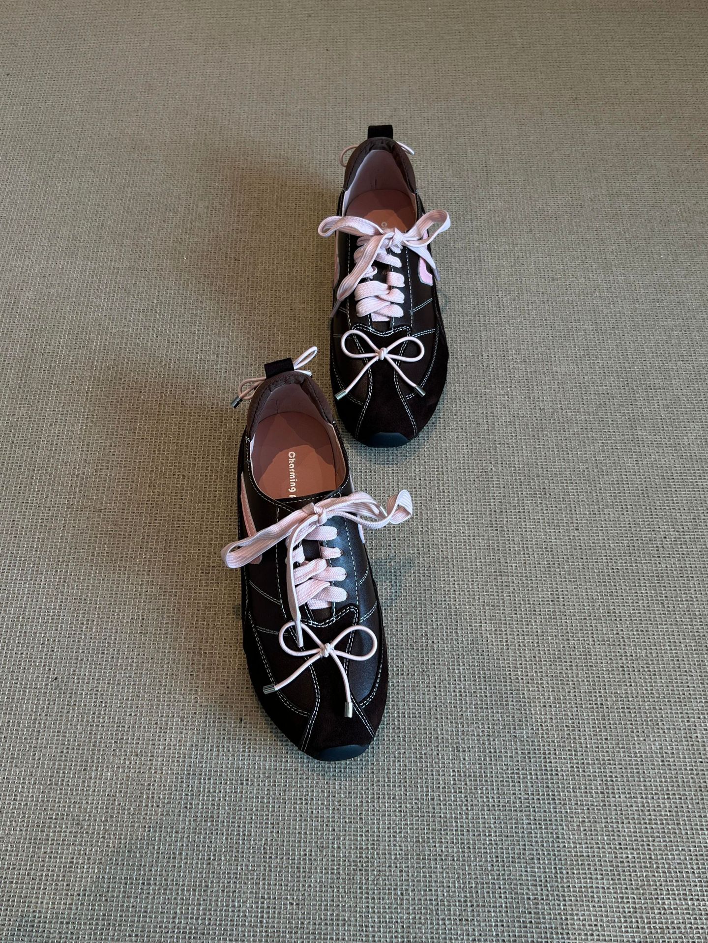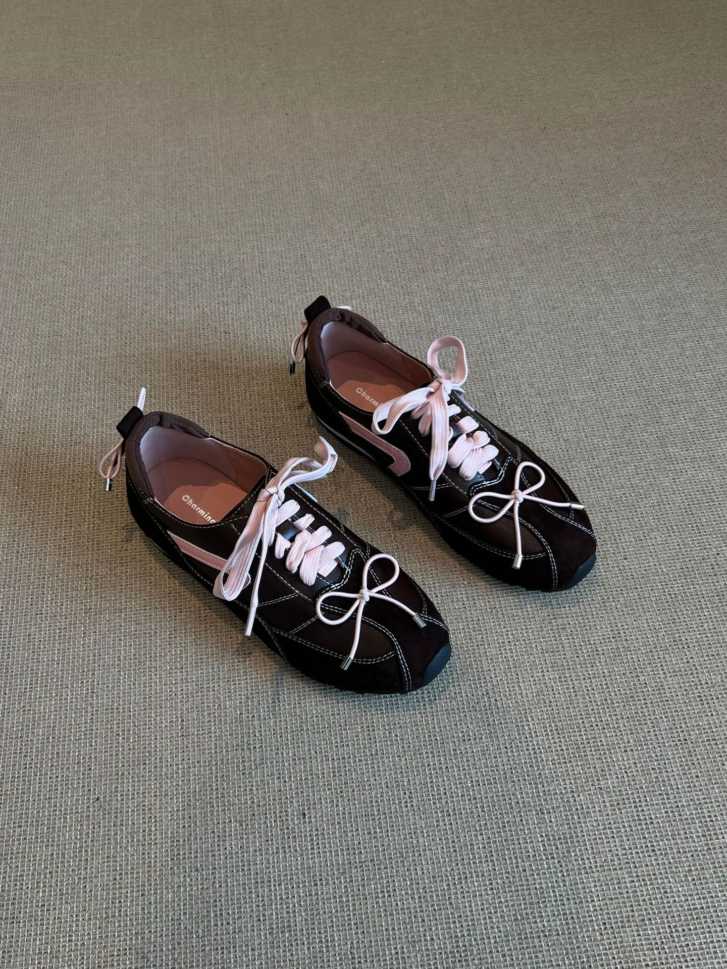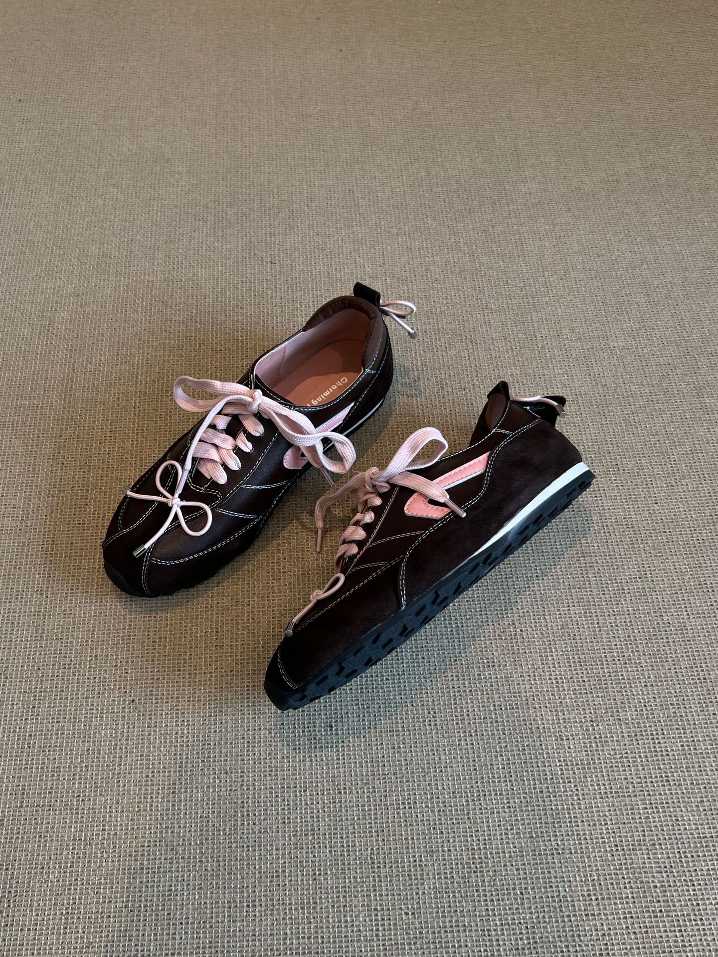 羊皮版~5CM内增高芭蕾德训鞋女2025秋季新款美拉德系带休闲阿甘鞋