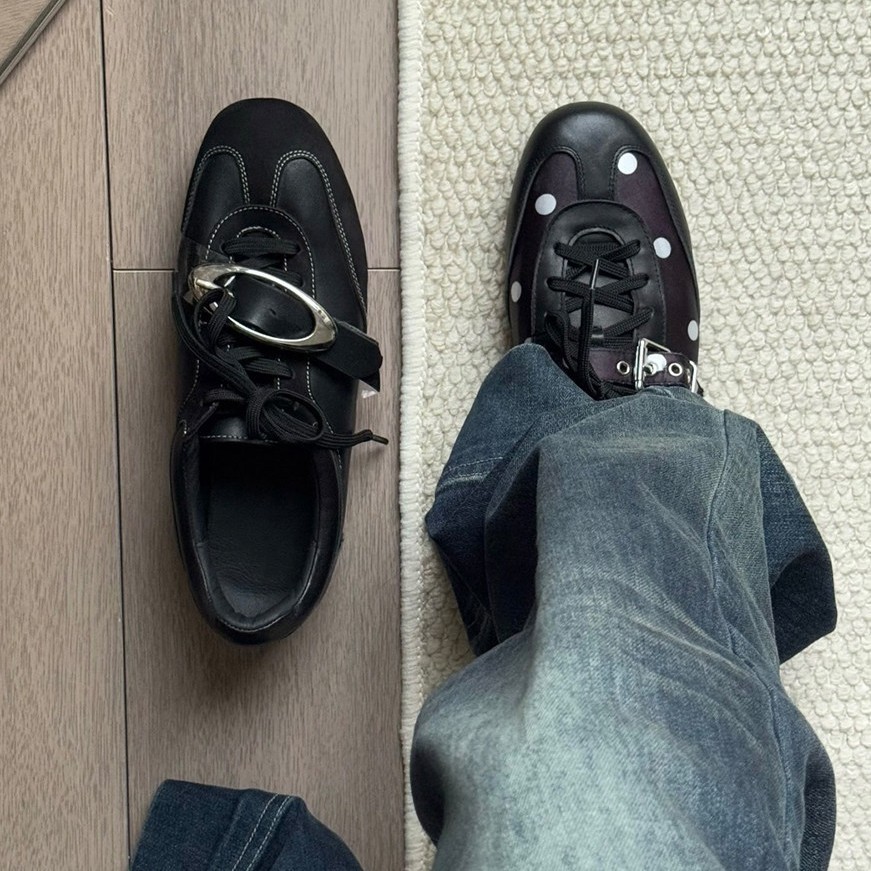 设计师新品~复古金属扣德训鞋女春秋新款通勤外穿休闲系带小皮鞋